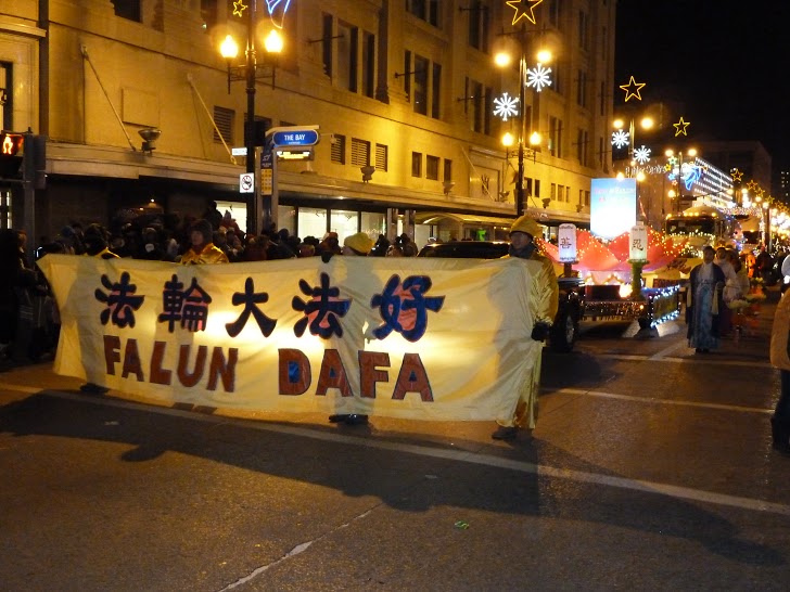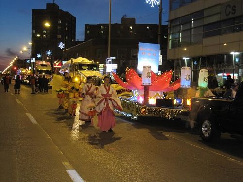 温尼伯圣诞花车游行已有一百零五年的历史,这是法轮功学员第四次参加。今年的气温比前几年低了十几度,但前来观看游行的民众的热情却不减往年,依然有不少爸爸妈妈提前一、两个小时就带着孩子、椅子、毛毯、和热巧克力,到街边上“占据”最好的位置观看,准备好欣赏一百多辆花车。