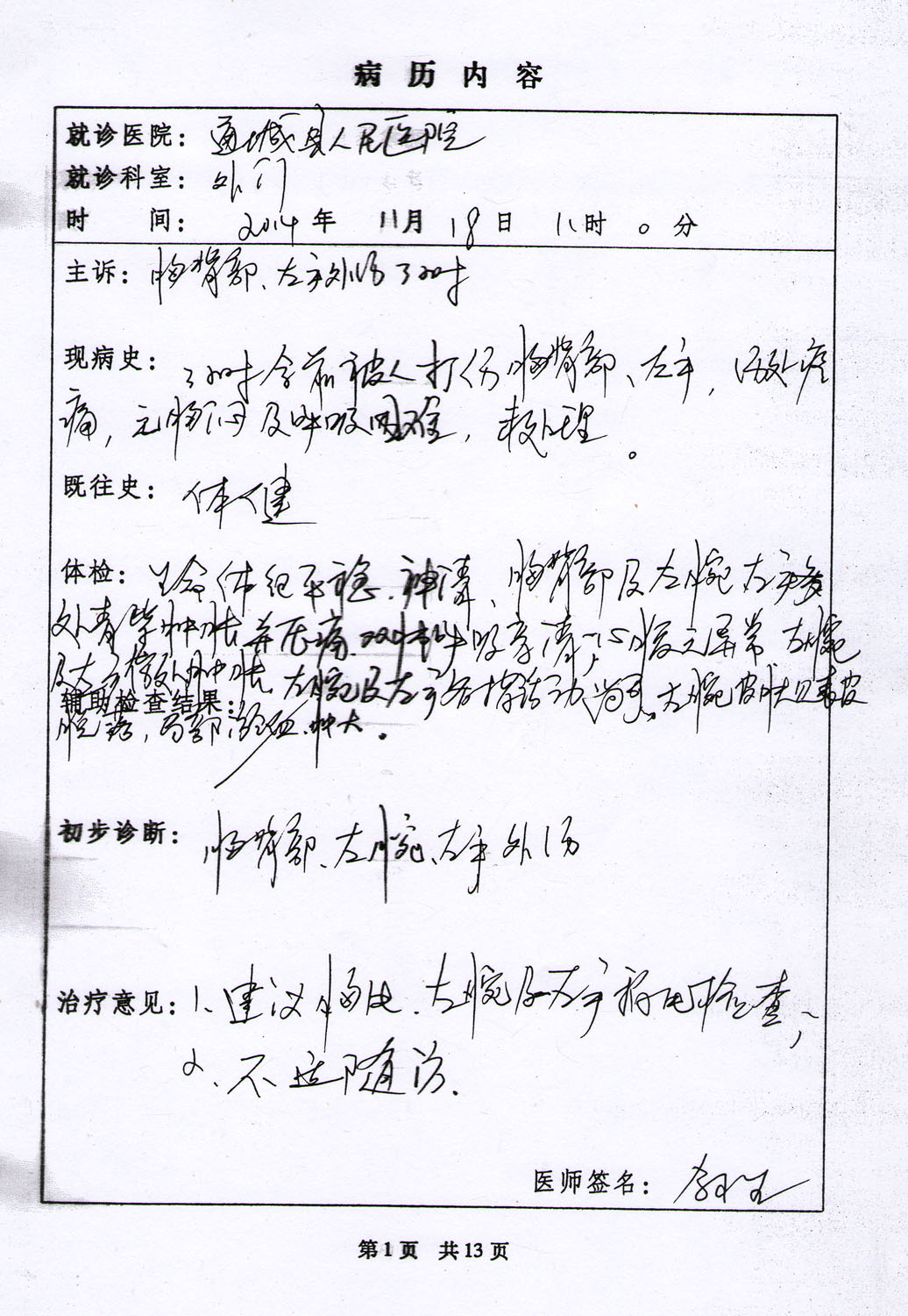 ![]() 魏月秀被县公安局国保大队教导员黎成刚殴打后的检查病历 |