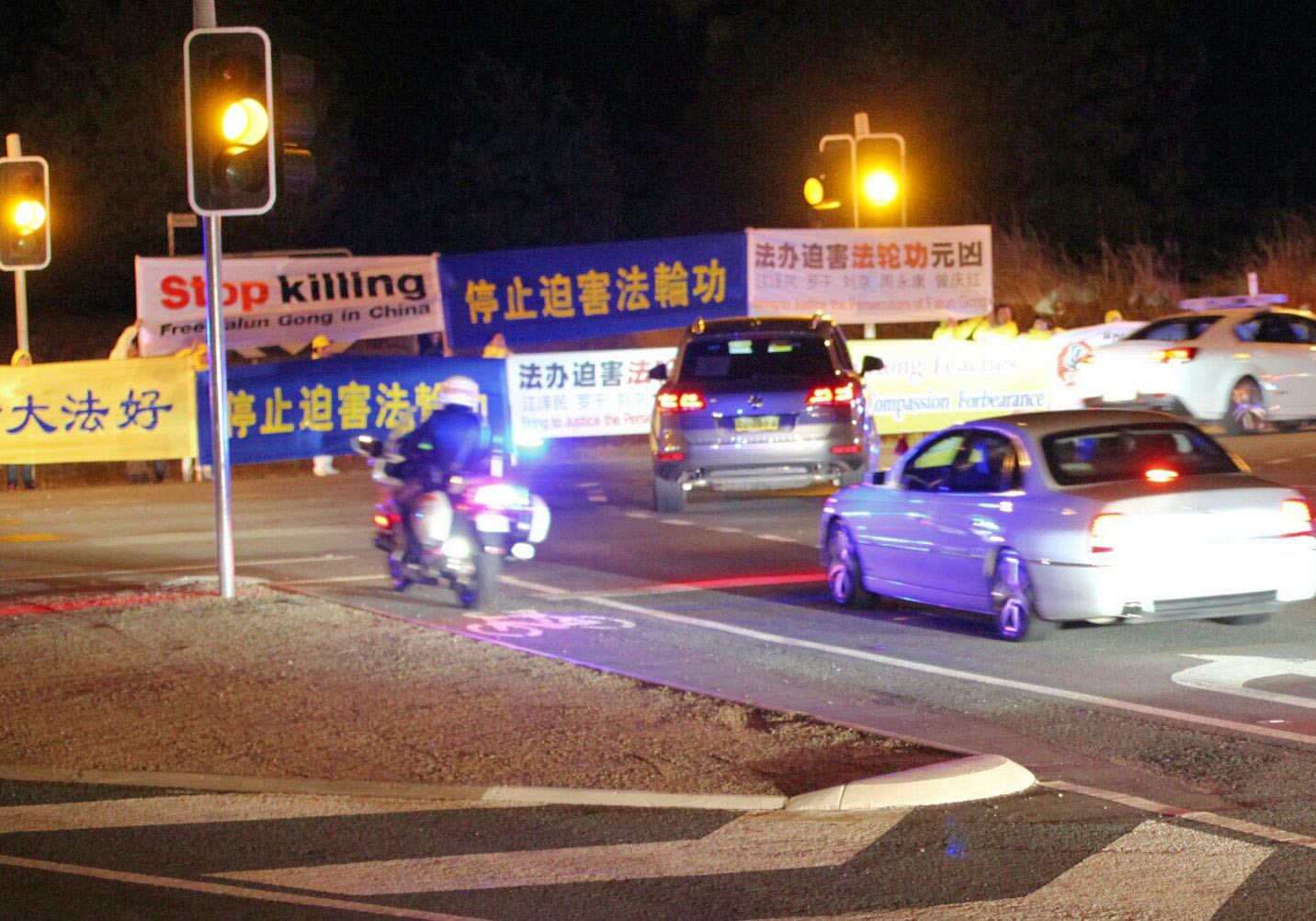 ![]() 习*近*平车队从堪培拉机场前往凯悦宾馆,路遇法轮功横幅 |
