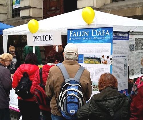 法轮功学员在首都布拉格讲述法轮功真相,民众不仅了解了法轮功的美好,还了解了中共对法轮功的残酷迫害。这一天最大的庆祝活动是在捷克首都布拉格举行,捷克法轮功学员举办信息日,告知人们,共产极权在中国还存在,而且正在持续,并极其凶残的正在迫害法轮功学员。