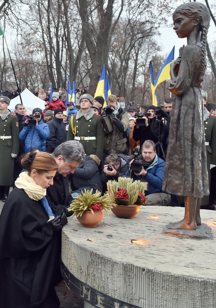 ![]() 二零一四年十一月二十二日,乌克兰总统波罗申科偕夫人跪祭在苏联共产党制造的“大饥荒”中所死去的数百万国人。这是乌克兰第一次以国家的名义公开反思共产党制造的悲剧,波罗申科总统表示共产党现已被扔进“历史的垃圾堆”。 |