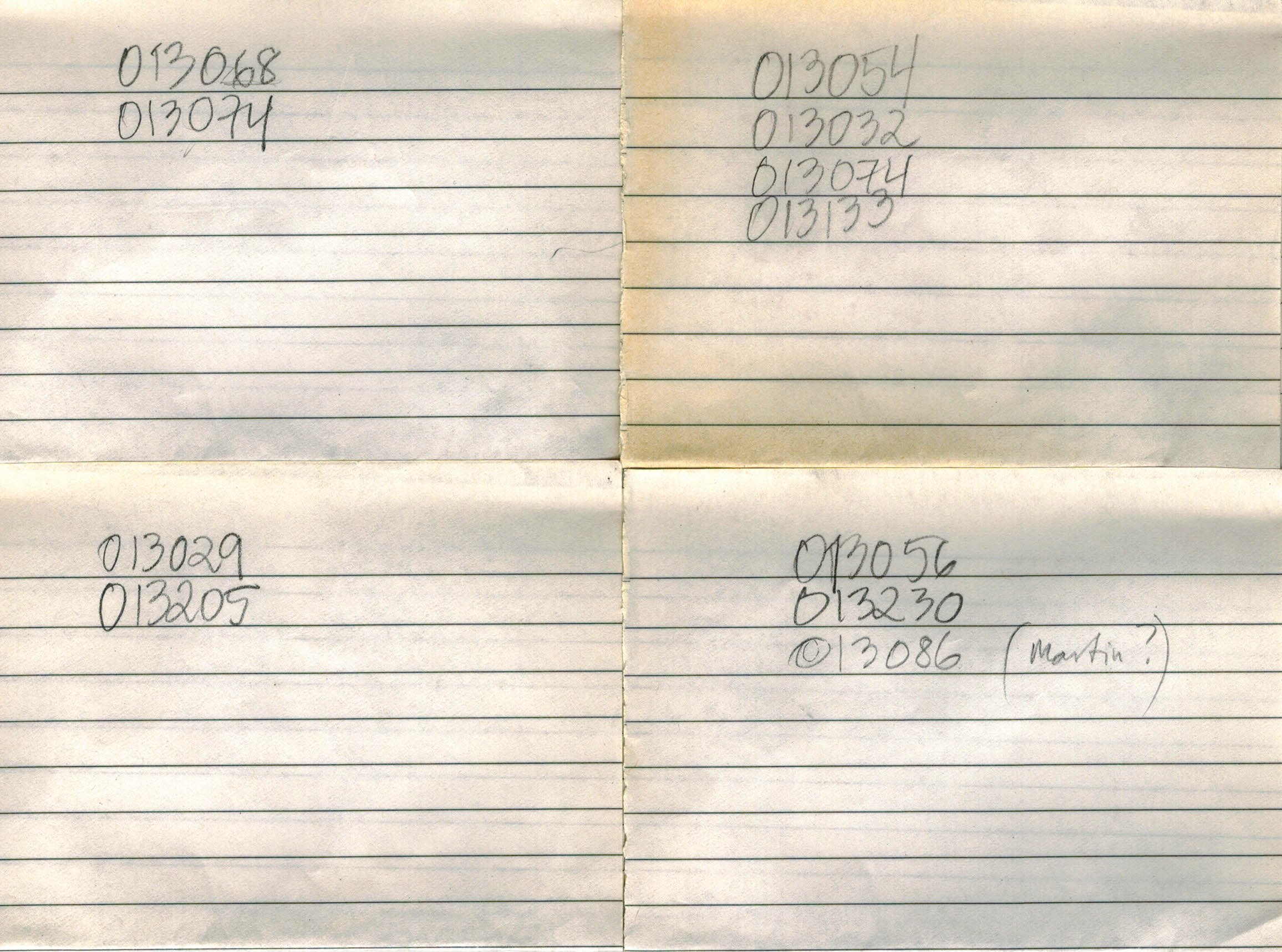 013054;013032;013074;013133;013056;013230;013086;