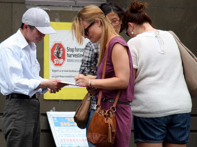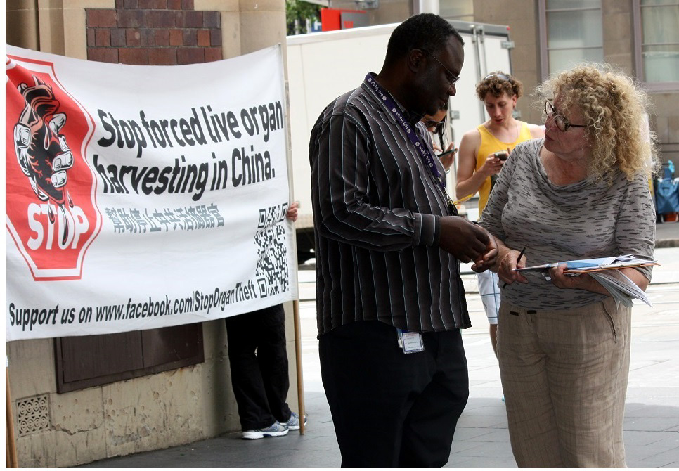 ![]() 图1-2:悉尼民众在制止中共活摘法轮功学员器官征签表上签名 |