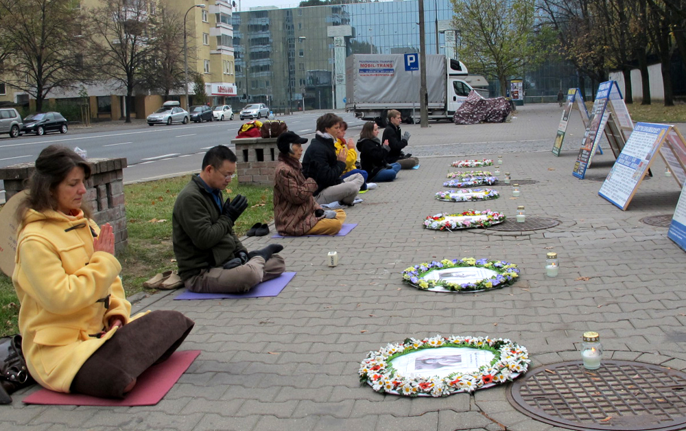 ![]() 图1-2:波兰法轮功学员在华沙中使馆门前烛光悼念被中共迫害致死的大陆同修 |