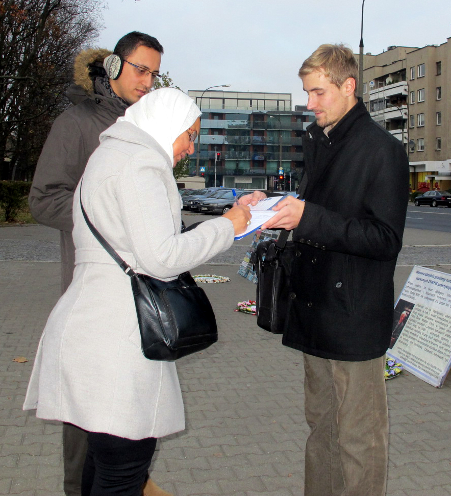 ![]() 图3-4:华沙中使馆门前,过路民众签名反对中共活摘器官的罪恶 |