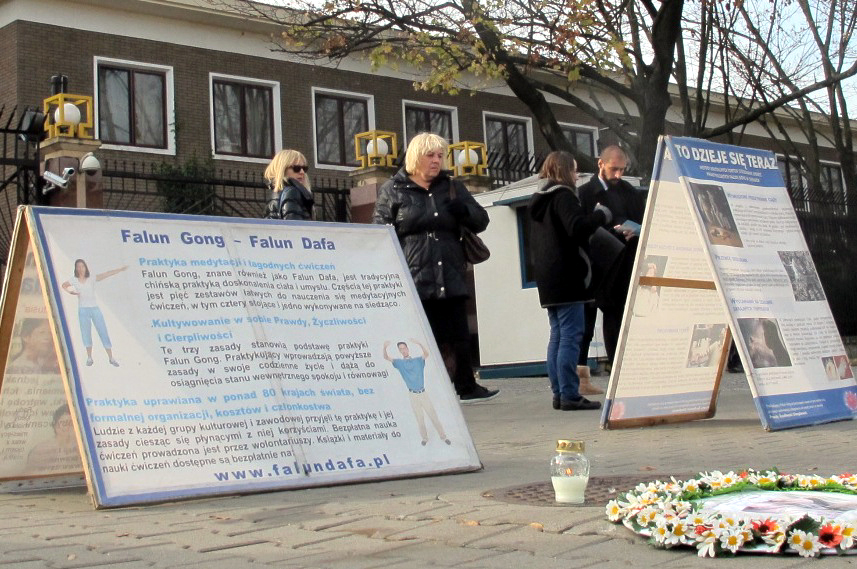 ![]() 图8:波兰法轮功学员在格但斯克中领馆门前烛光悼念被中共致死的大陆同修 |
