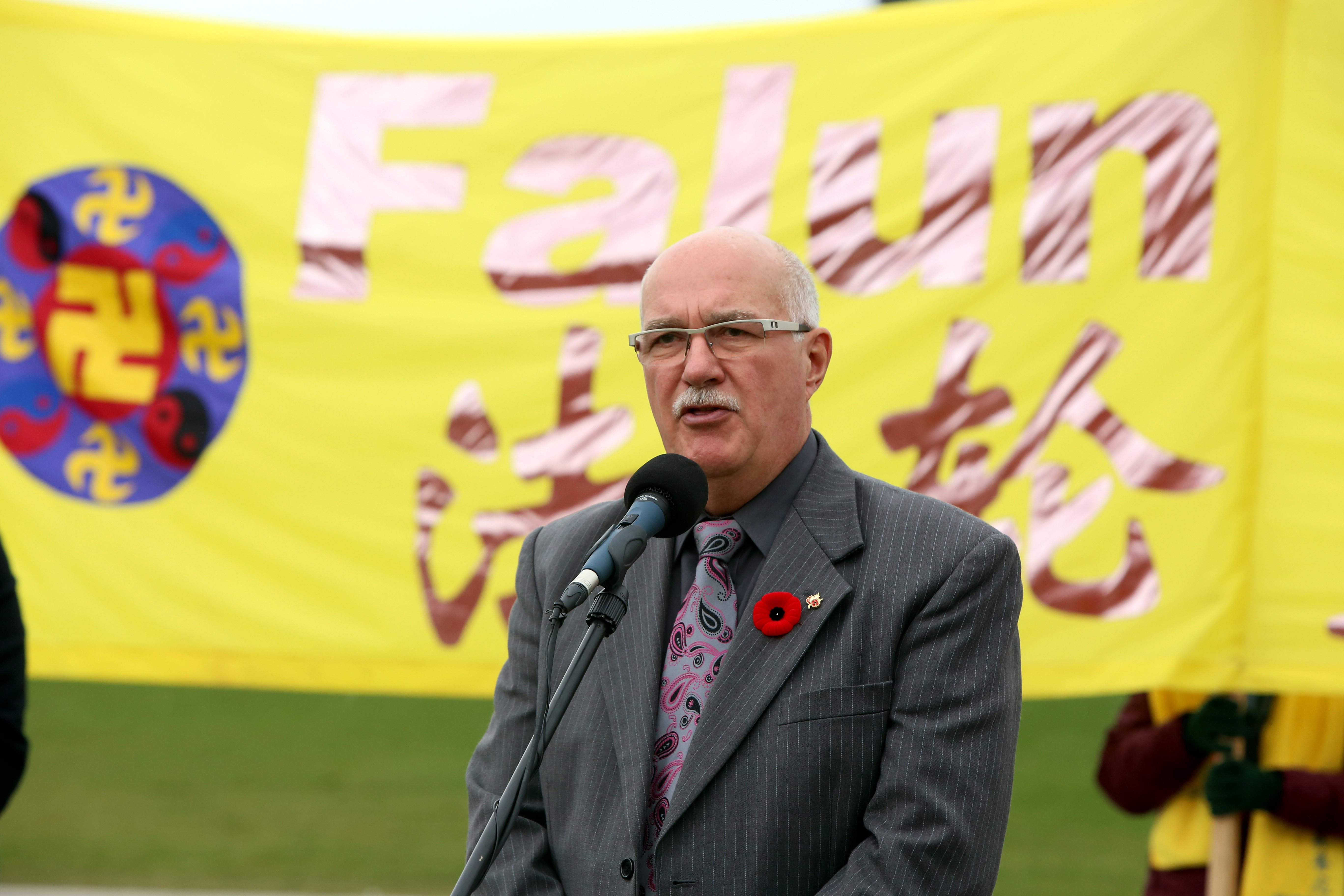 ![]() 加拿大资深前议员、前亚太司司长大卫•乔高在集会上发言 |