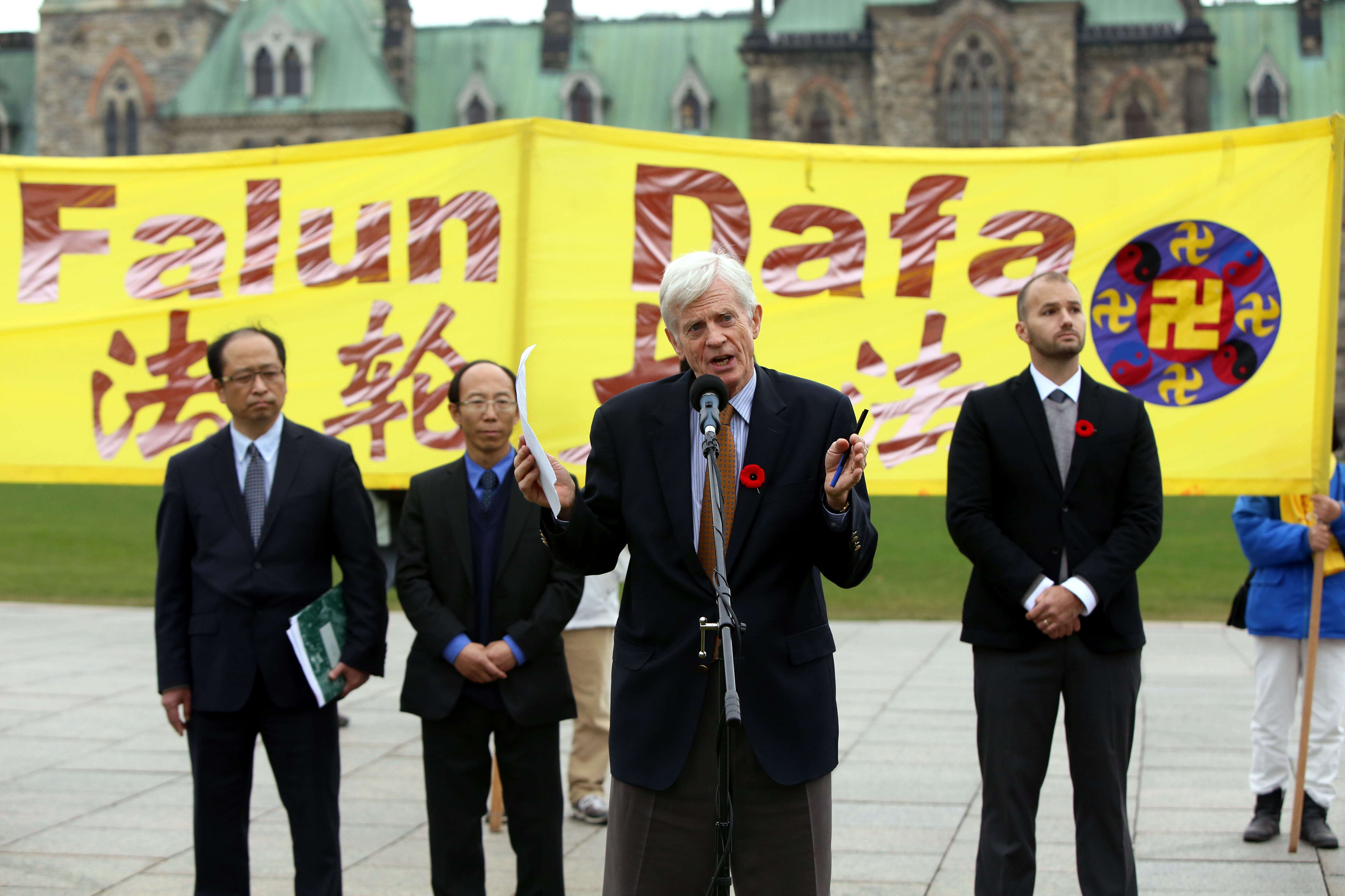 当天的集会上,国会议员、绿党领袖伊丽莎白•梅(Elizabeth May)、国会议员朱迪•斯格诺(Judy Sgro)和国会议员加利•布里特布鲁兹(Garry Breitkreuz)、国会议员布鲁斯•海耶(Bruce Hyer)和资深前议员、前亚太司司长大卫•乔高为制止迫害发声。