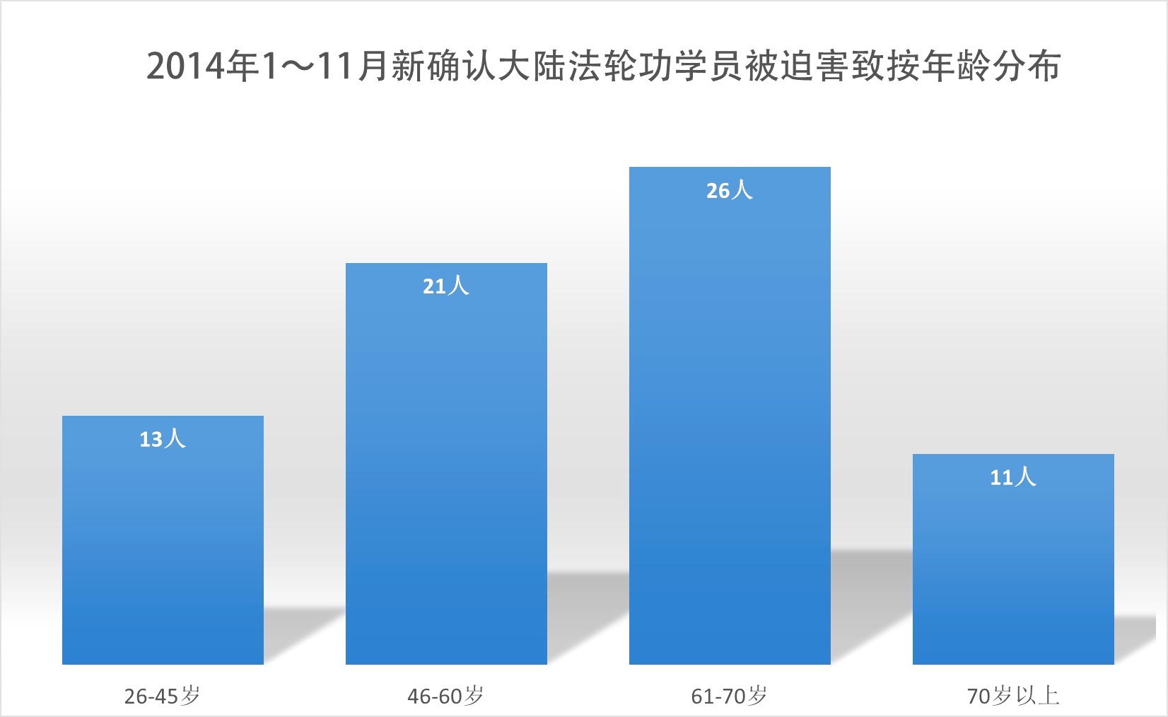 ![]() 图4:2014年1至11月新确认被迫害致死法轮功学员年龄分布 |