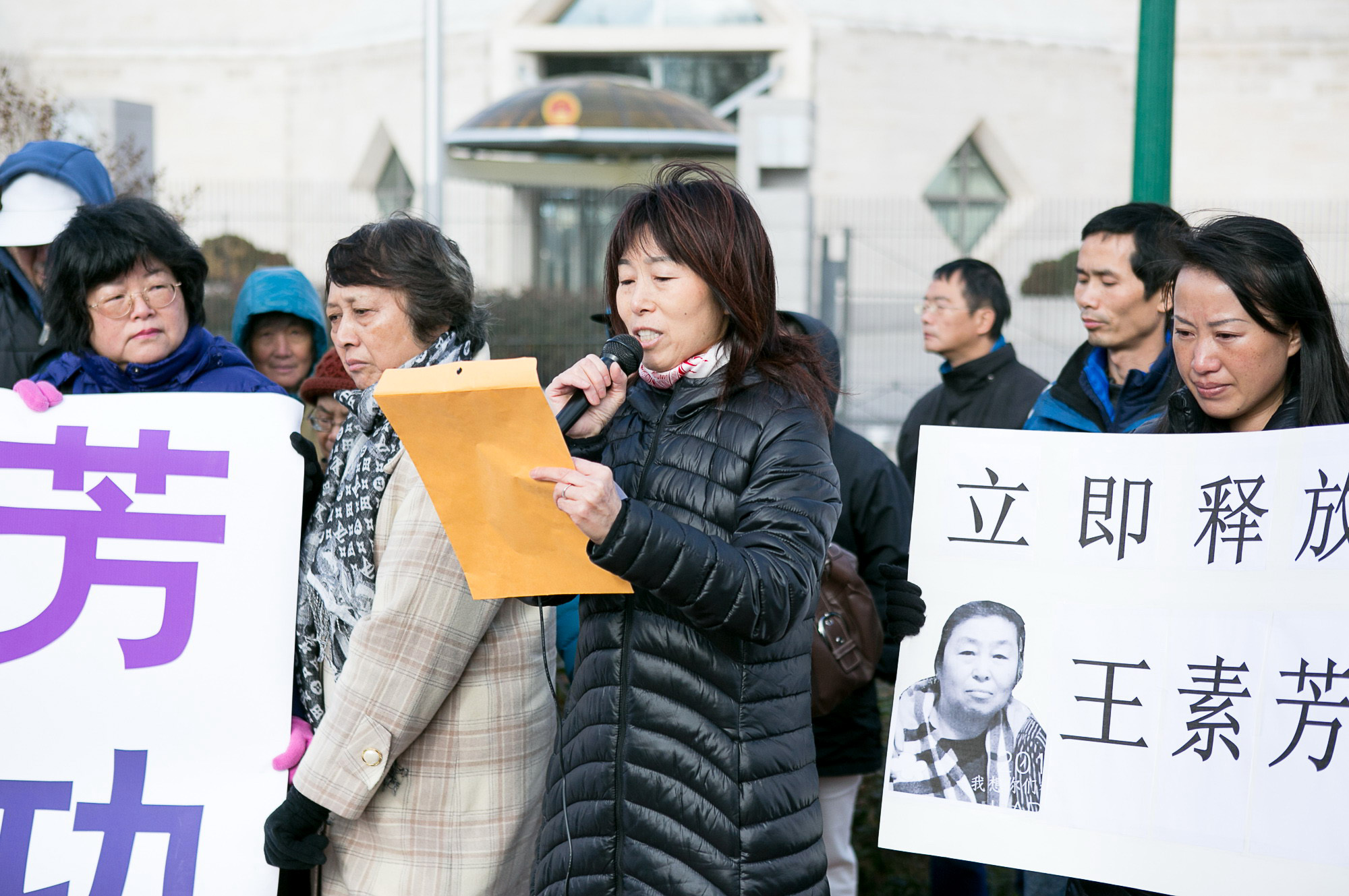 美国华盛顿DC法轮大法学会发言人葛敏女士说:“我们今天来到这里,责令中共立即无条件释放王素芳,以及所有被非法关押的法轮功学员。立即停止迫害法轮功!法轮功学员按照真善忍的原则在做好人,这是对人类和任何国家和社会都是百利而无一害。就算按照中国的法律,修炼法轮大法也是完全合法的。在法律面前,迫害和拘押王素芳的那些人才是真正在犯法。”