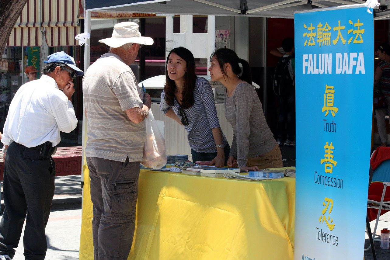 ![]() 法轮功学员在自由广场向路人讲真相,征集反活摘器官签名 |