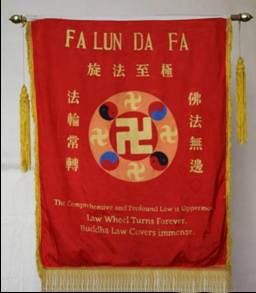 李洪志师父授予双城市法轮功学员的法轮旗