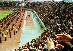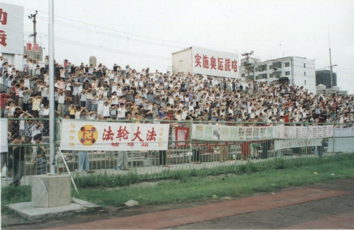 一九九八年八月哈尔滨学员纪念李洪志老师来哈传法四周年三万人集体炼功场面
