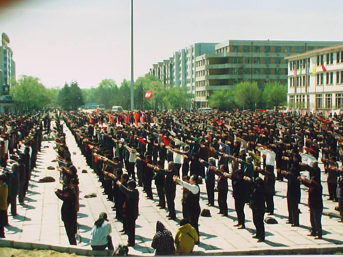 一九九九年七月前,哈尔滨法轮功学员集体炼功场面