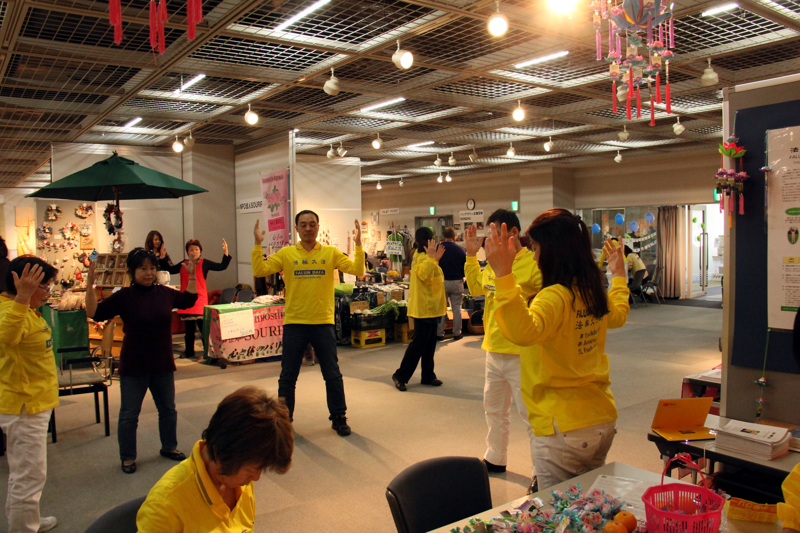 ![]() 广岛市民交流庆典上,民众学炼法轮功 |