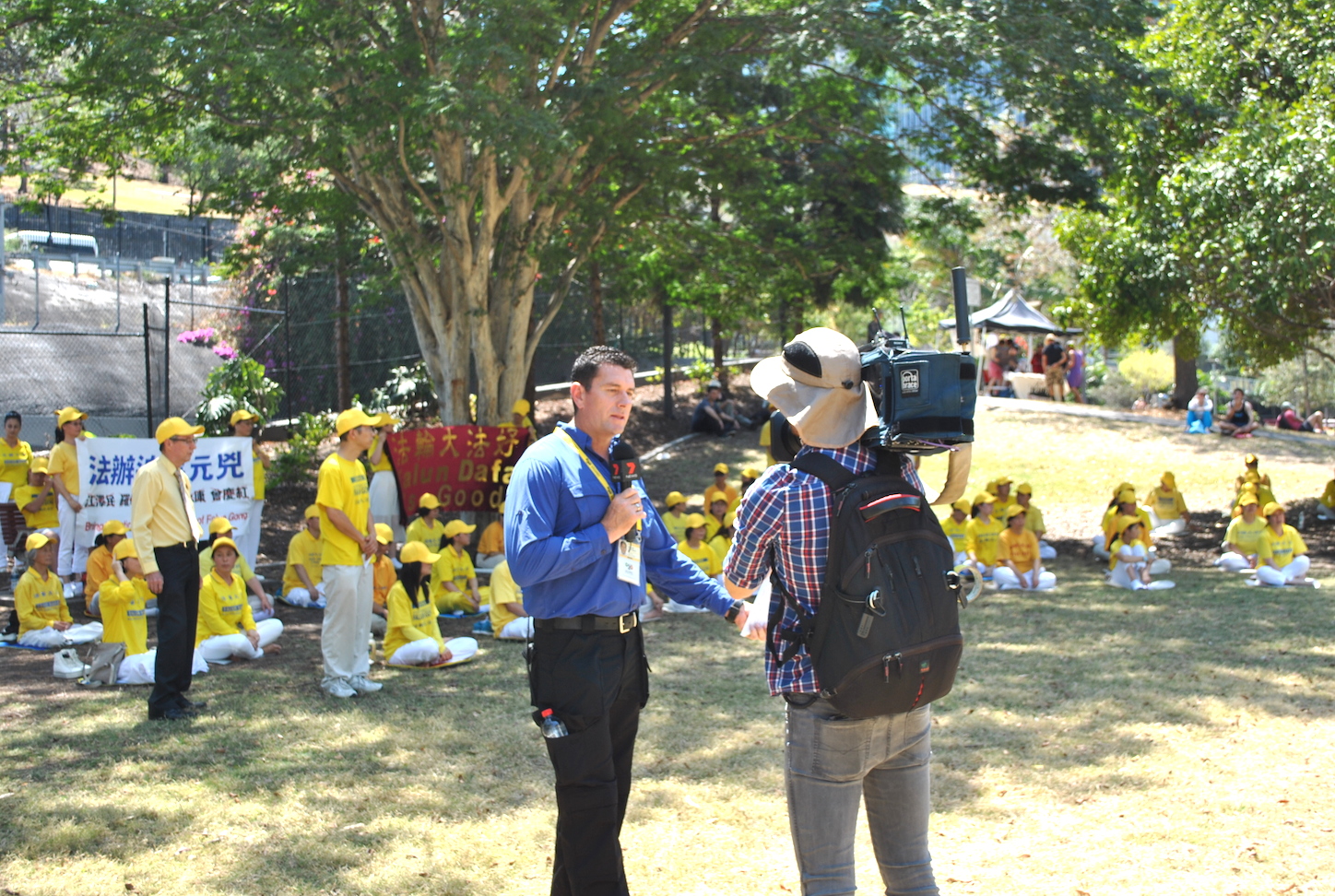 澳洲的国家公共广播机构--澳洲广播公司(Australian Broadcasting Corporation,ABC)在法轮功的集会现场做了较长时间的报导,整个游行过程中,他们的几名记者一直与法轮功学员的游行方阵在一起。此外,澳洲七号电视台、九号电视网络、 天空新闻、《布里斯本时报》都先后来到集会现场做报道。《布里斯本邮报》及多家独立媒体也先后采访了法轮功学员。