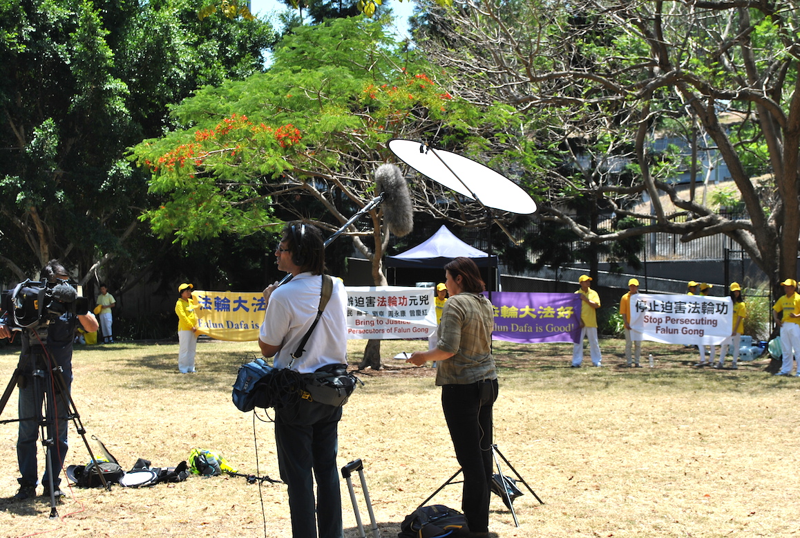 ![]() 澳洲广播公司(ABC)在法轮功学员的集会上进行现场直播 |