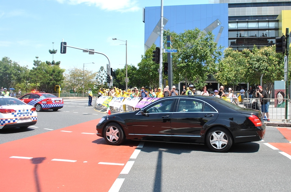 二十国领导人峰会期间,法轮功学员在布里斯本举行的活动受到媒体和公众瞩目。奥巴马的车队看到了法轮功学员,“法轮大法好”、“法办迫害法轮功元凶”(江泽民)和“停止迫害法轮功”等横幅,车里面代表团的人员跟学员们招手。其它国家如意大利、新加坡、韩国等车队也经过并看到法轮功横幅上的内容,车里的人也都跟学员们招手致意。
