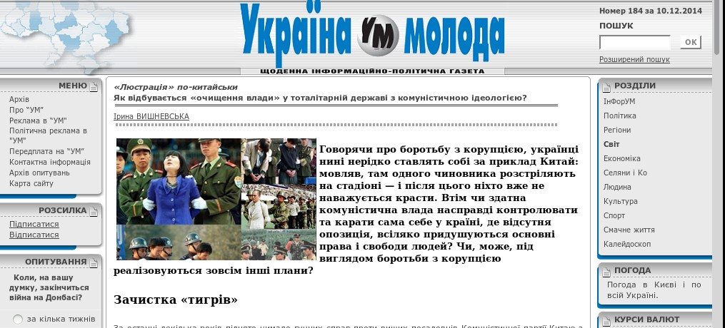 ![]() 图:《乌克兰青年报》刊登文章《共产主义意识形态的极权国家如何进行“清权”?》的电子版截图 |