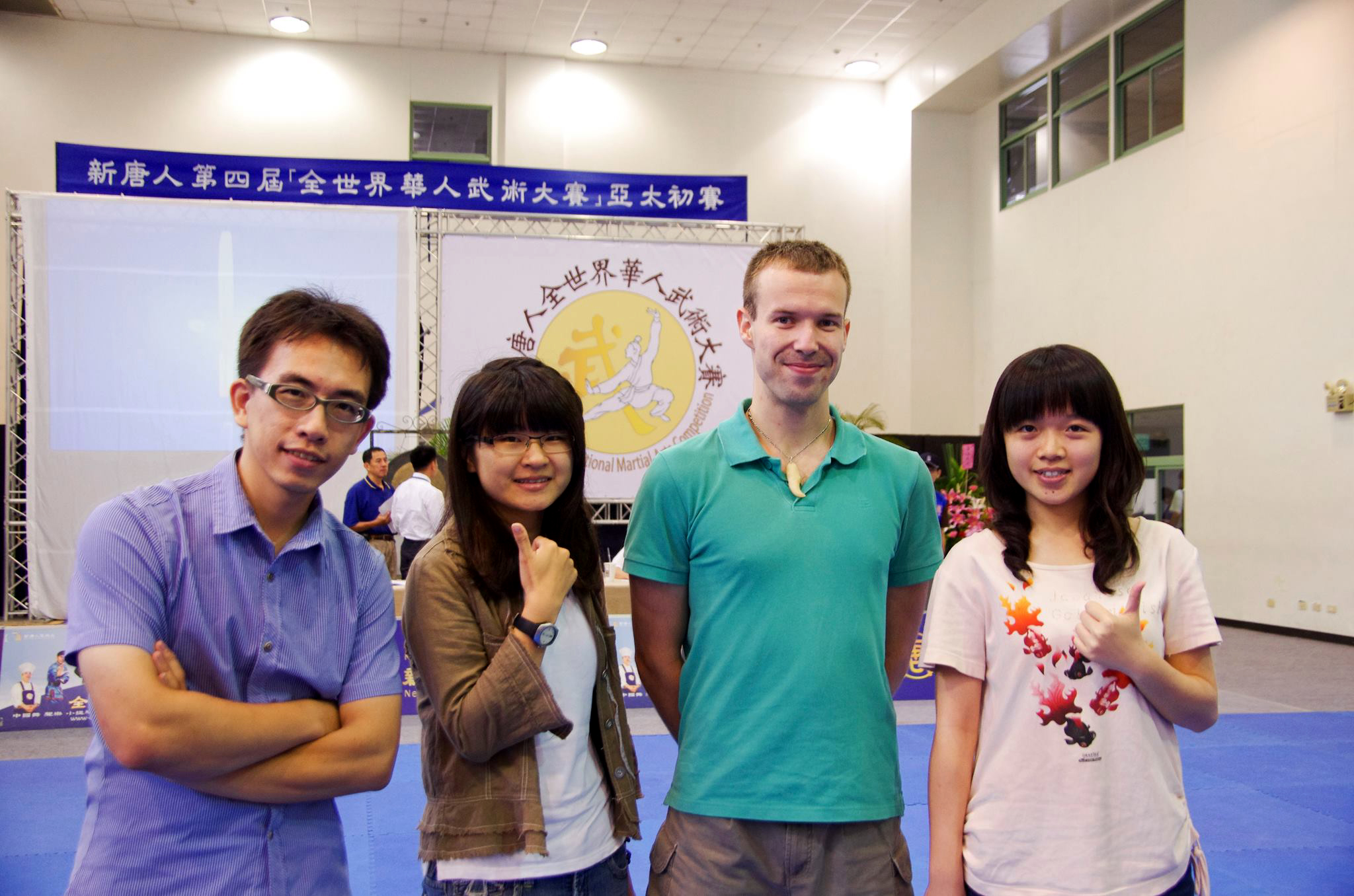 !唐!人:武术大赛>张嘉升(左一)与朋友参观新!唐!人:武术大赛 |