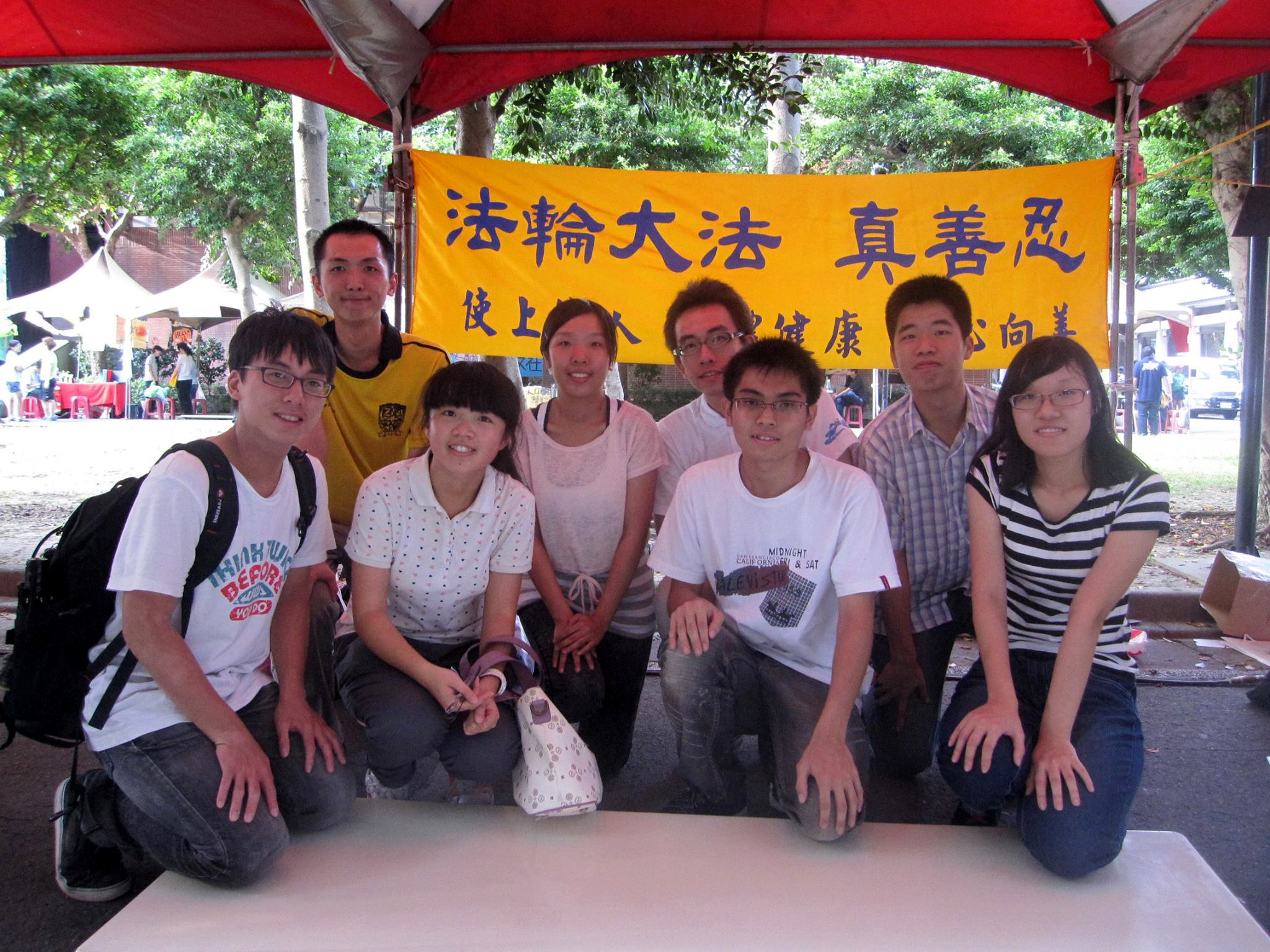 ![]() 张嘉升(后排右二) 参加师大法轮大法社社团博览会,与青年学子合影。 |