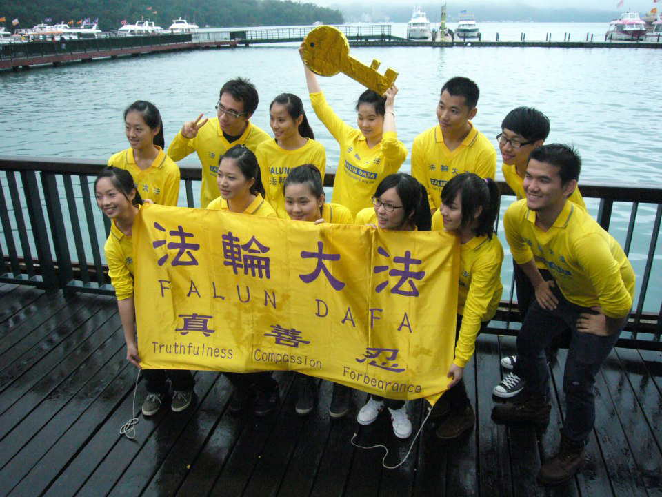 ![]() 张嘉升(后排左二)在日月潭参加二零一三年世界法轮大法日活动,与青年学子合影。 |