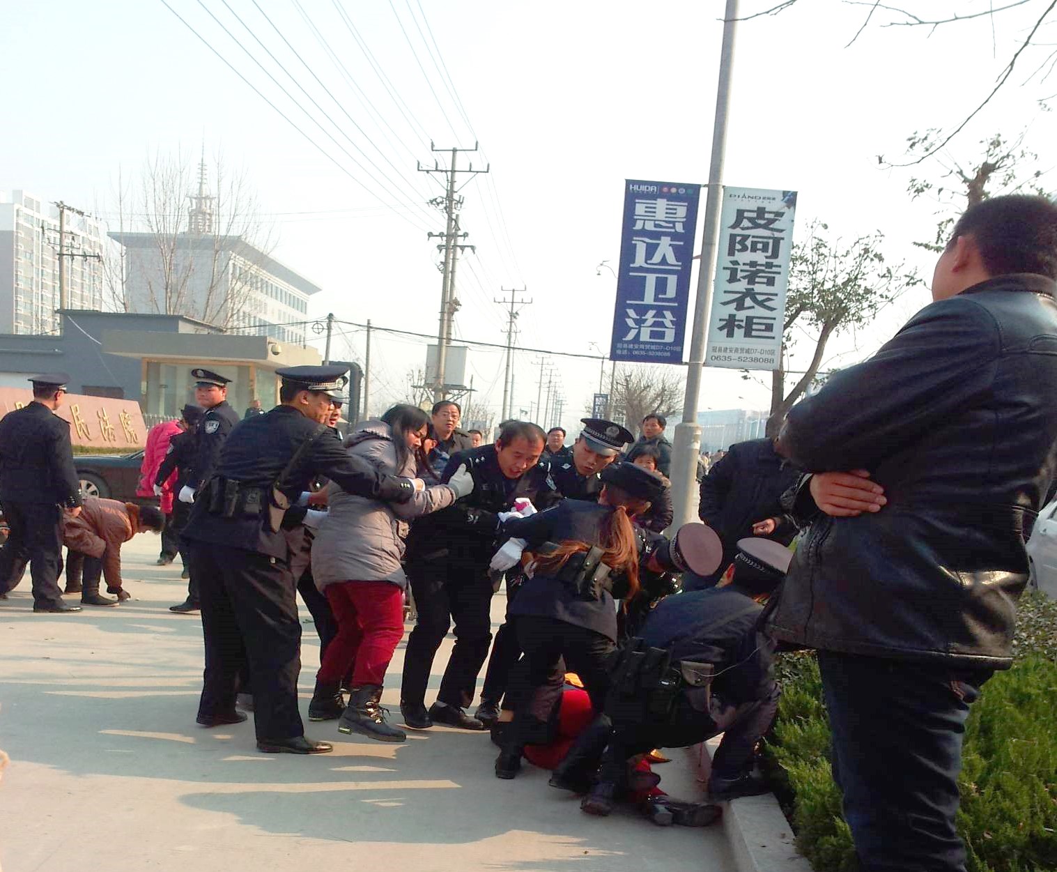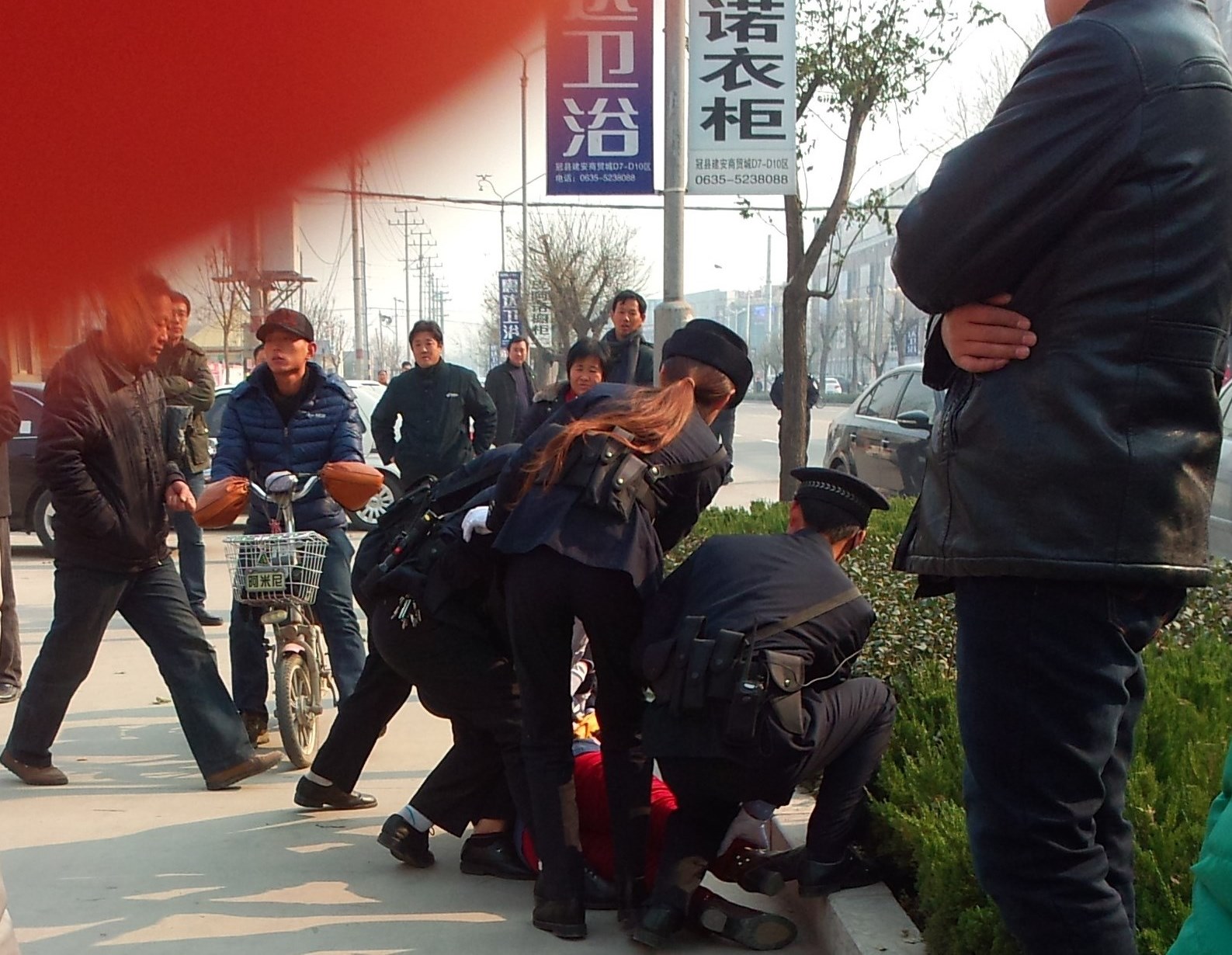 ![]() 第二次,六个警察扑向郭金勇姐姐并将她按到在地,强抢手机,在一边的两个警察拽住企图守护姐姐的郭金勇的妹妹,后面有两个警察看住弯腰捡起被警察抢夺散落在地的身份证和零钱。而这一切只是一瞬间,在这同时把已非法关押八个多月的法轮功学员郭书群、郭金勇父子用黑头套蒙住头,遮住眼睛,带回冠县监狱继续非法关押。 |