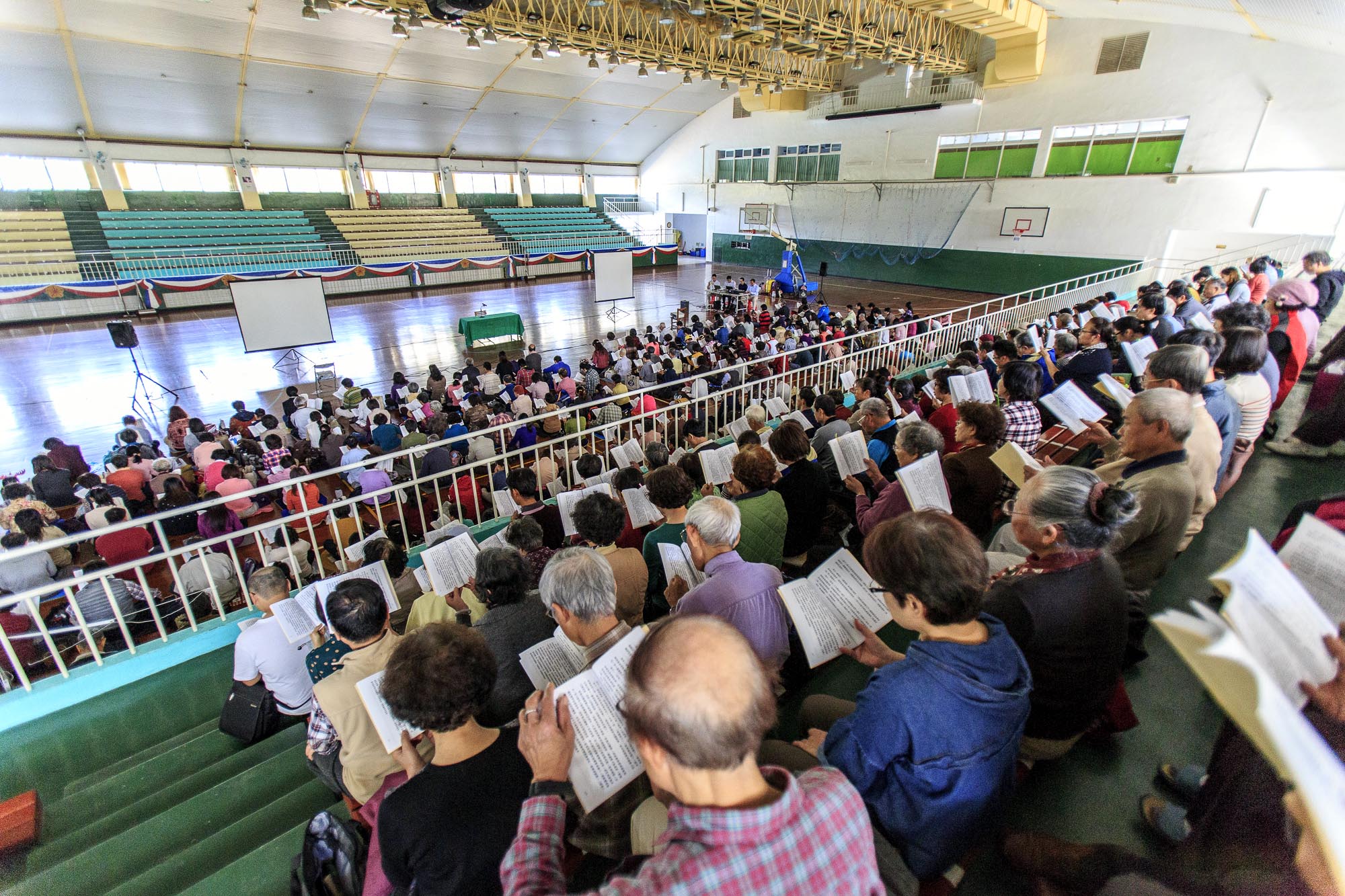 ![]() 下午全体与会法轮功学员在体育馆一起学习新经文《二零一四年旧金山法会讲法》 |