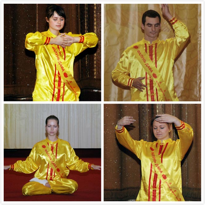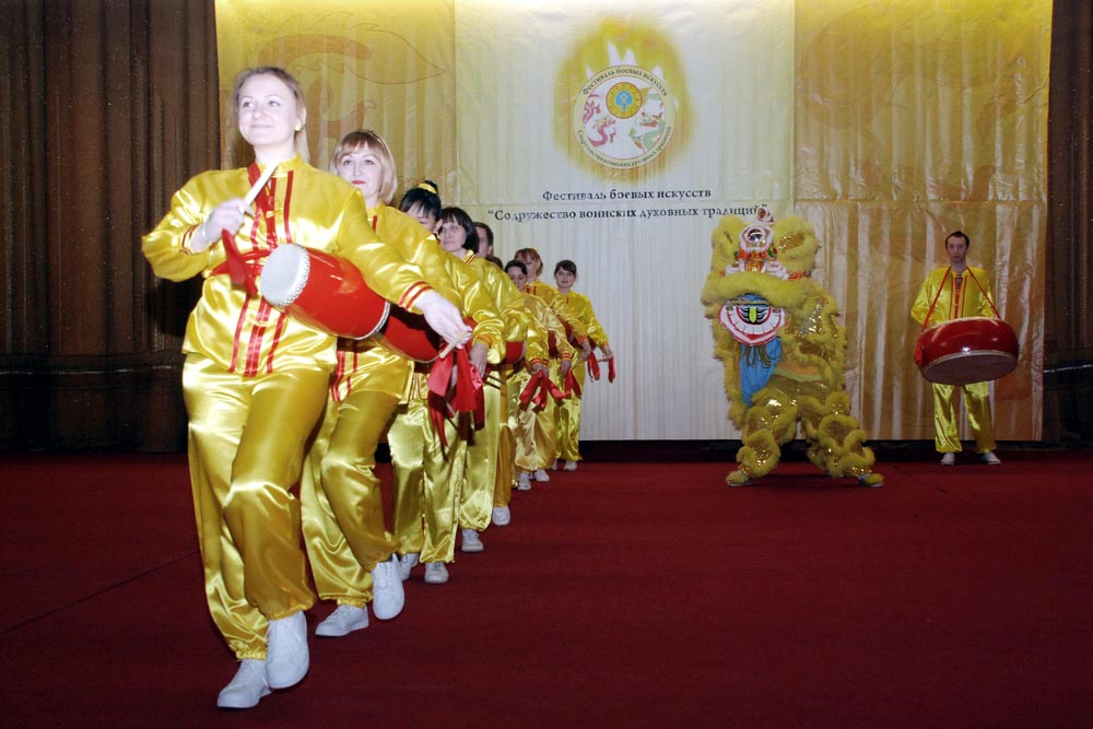 莫斯科法轮功学员展示了五套功法,现场台上台下都融入到了炼功音乐的美好祥和中。法轮功学员们还带来了中国传统的舞狮和腰鼓表演。