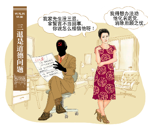 “入党时发毒誓说要为共产奋斗终身,对这种誓言我没法负责……所以赶快退了,万一真有什么报应,我已经退了,良心无愧,不在其中。”
