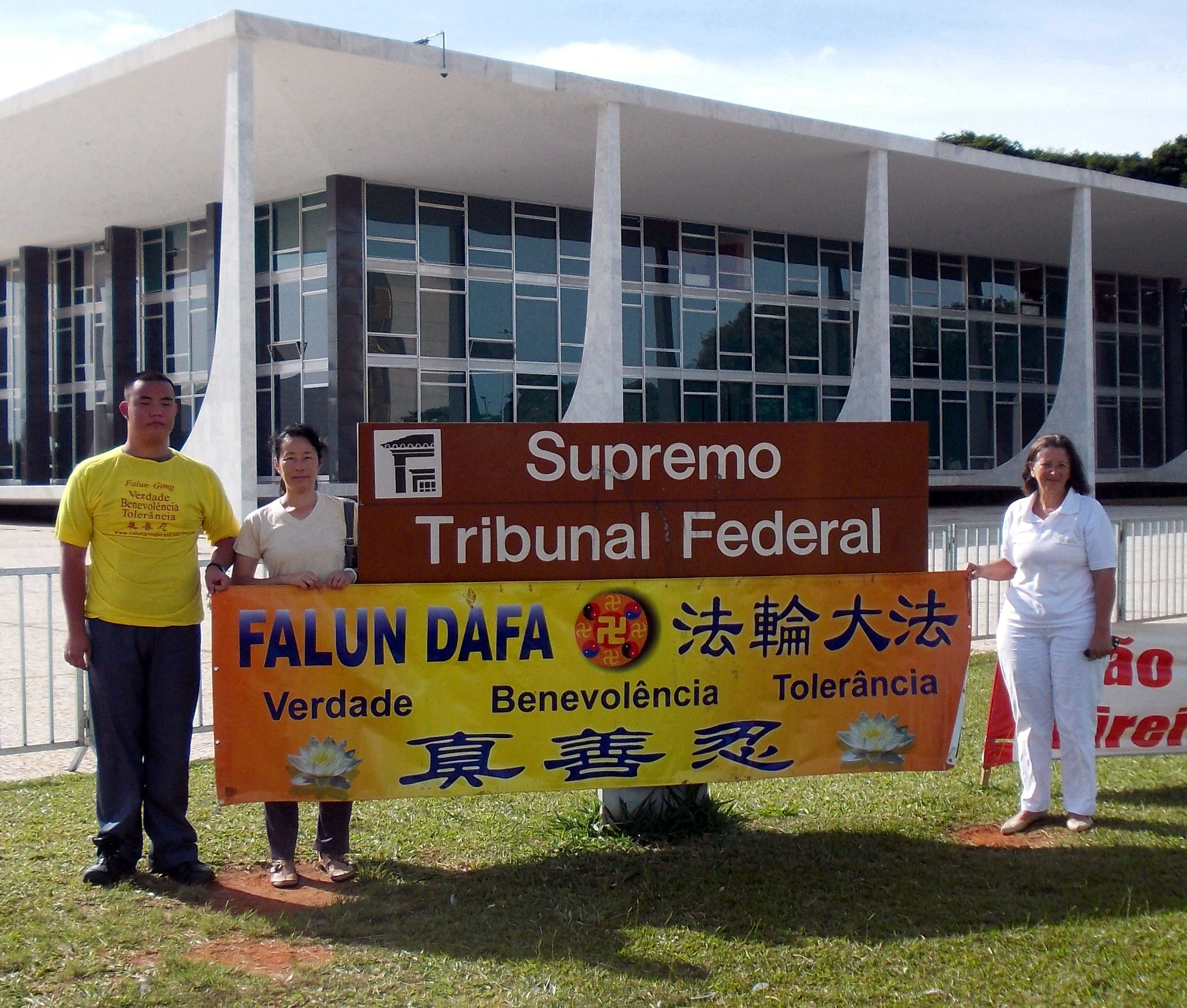 ![]() 在巴西最高法院机构前展示法轮功真相横幅 |