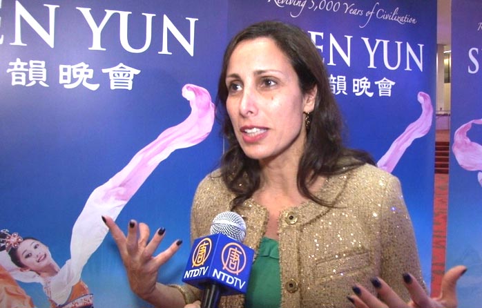除了欣赏神韵的美丽,她还体悟到了神韵表演弘扬的中国传统文化价值观:“我们能看到(中国的)传统精神信仰,很多都与创世主、人生轮回和各种信仰有关。不停地向人们展示,中国精神的奠基,这些信仰的基础,是那么的美丽。”