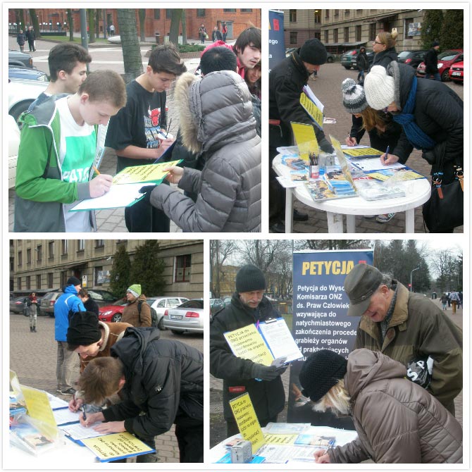 一位年轻小伙子不解地问道:“中国有法律吗?为什么这么明显的违法行为不能用法律来解决?”旁边的一位老年人直接回答:“知道什么是共产党吗?共产党就是老百姓必须遵守法律而它不必须,自由权利是专给党设的,它想说什么就说什么,想干什么就干什么,可以撒谎,可以骗人,可以杀人,也可以诬陷任何人,而老百姓连说实话的地方都没有。波兰共产党时期就是如此,保罗二世就因坚持信仰在共产党时期坐过监狱的,中国只要是共产党当政,对法轮功的活摘器官我相信都是真实的,也相信不会停止,我签名支持法轮功。”小伙子听后也立即拿起一个征签簿快速的签上自己的名字。