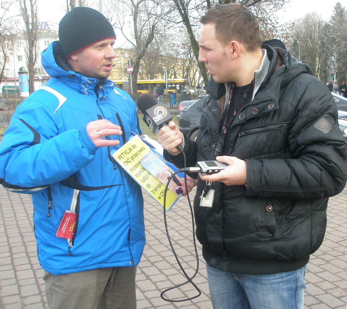 ![]() 罗兹市电台记者采访法轮功学员,十分震惊中共对法轮功学员的迫害 |