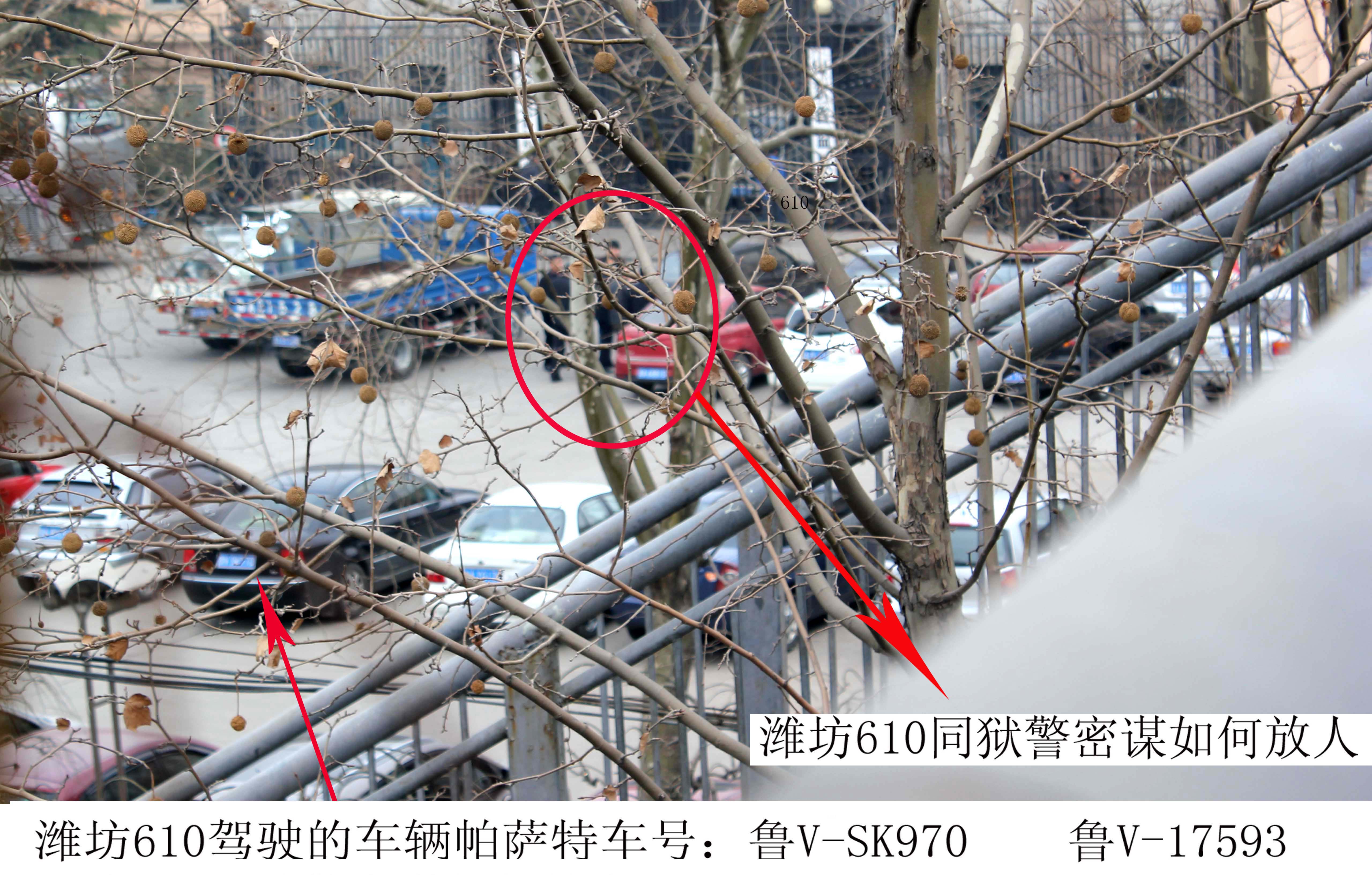 当天早上七点多,姜国波的家人从几百公里外的家乡赶到山东省监狱的大门口,站在那里焦急的盼望等待亲人快点出冤狱。潍坊610的数名恶人驾驶两辆黑色帕萨特早已等候在监狱大门口。