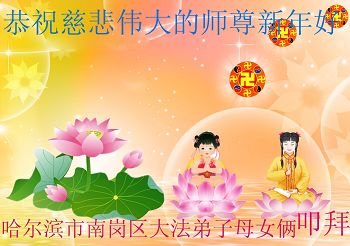助师正法念师恩,哈尔滨市香坊区一学法小组全体同修在甲午年到来之际给慈悲伟大的师父拜年,祝师父节日快乐!