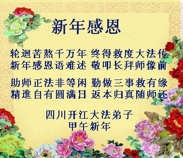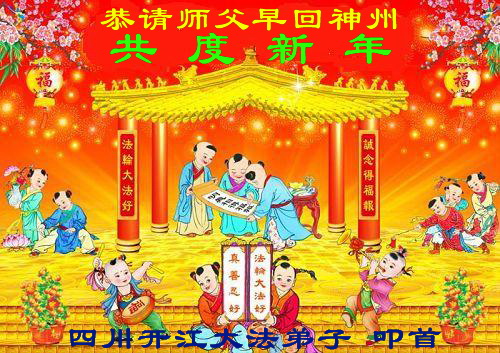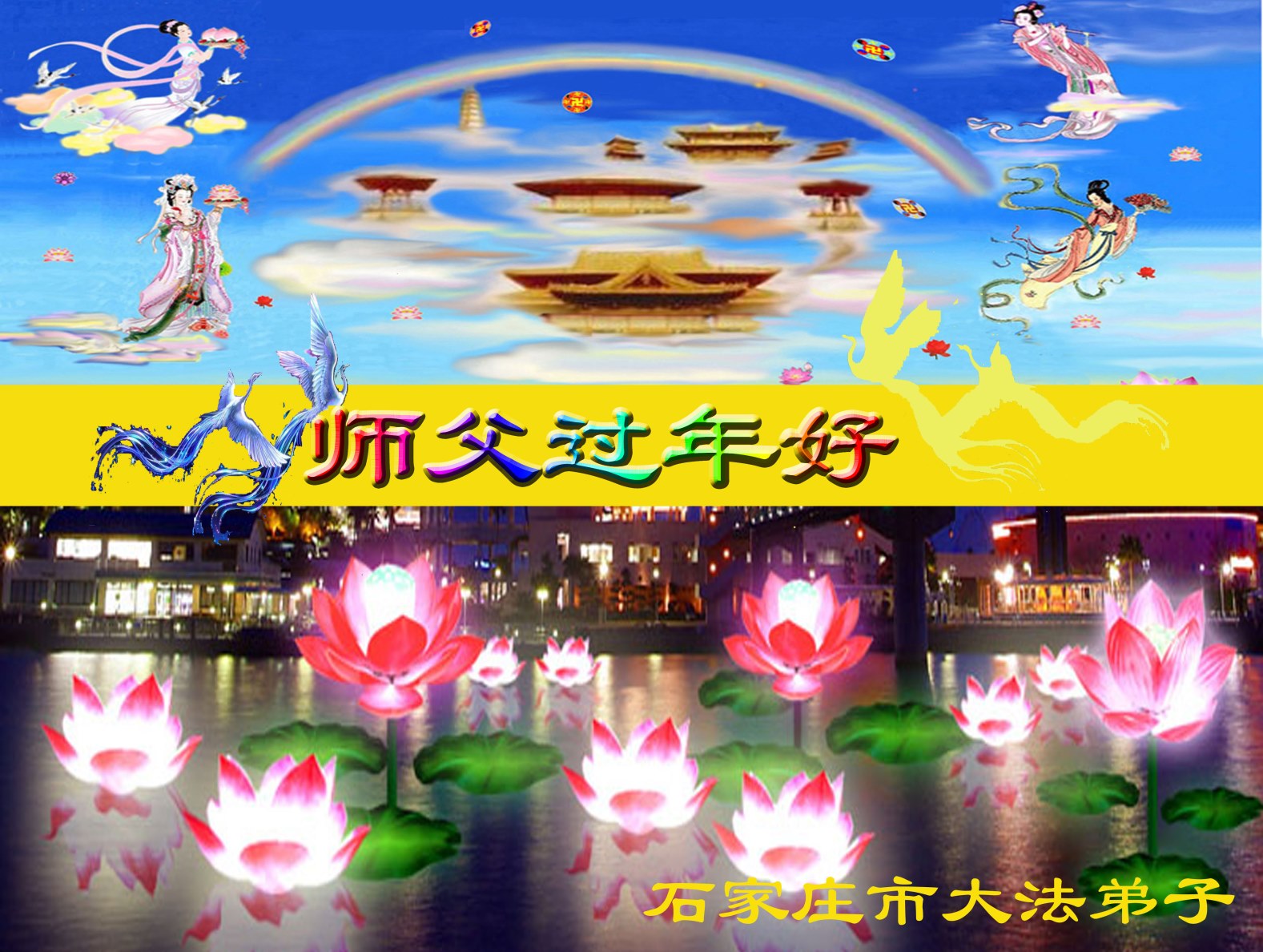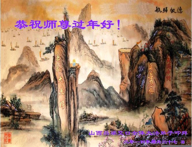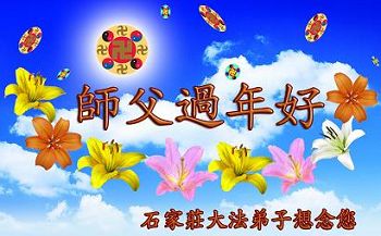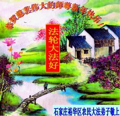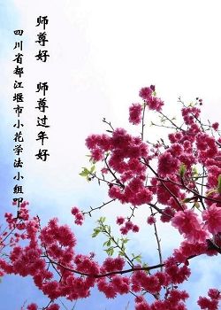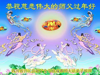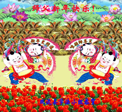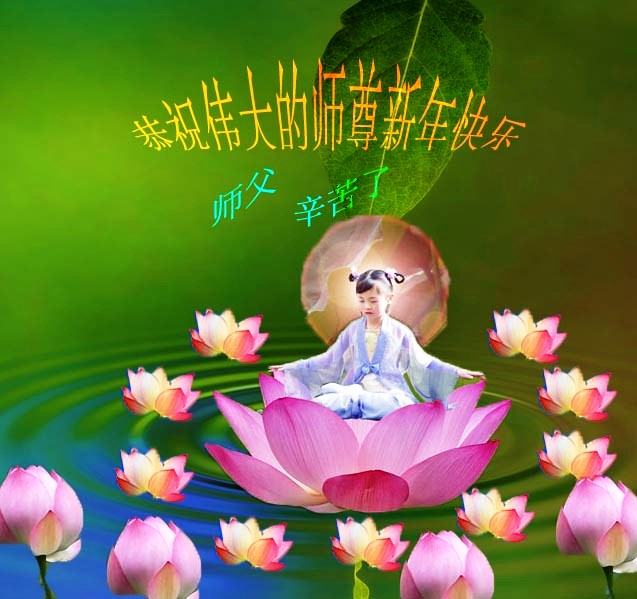 师尊:您将弟子从地狱中捞起,洗净弟子身上的污垢,将“真、善、忍”的宇宙法理传与弟子,弟子对您的感激法用言语表达,值此佳节送上一张贺卡,祝师尊过年好!