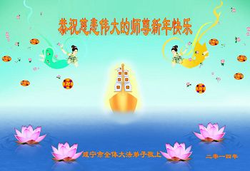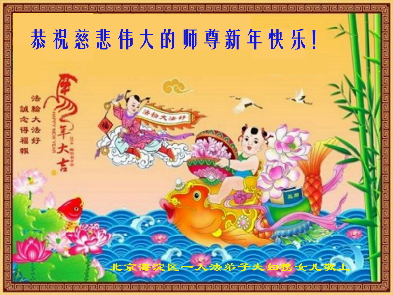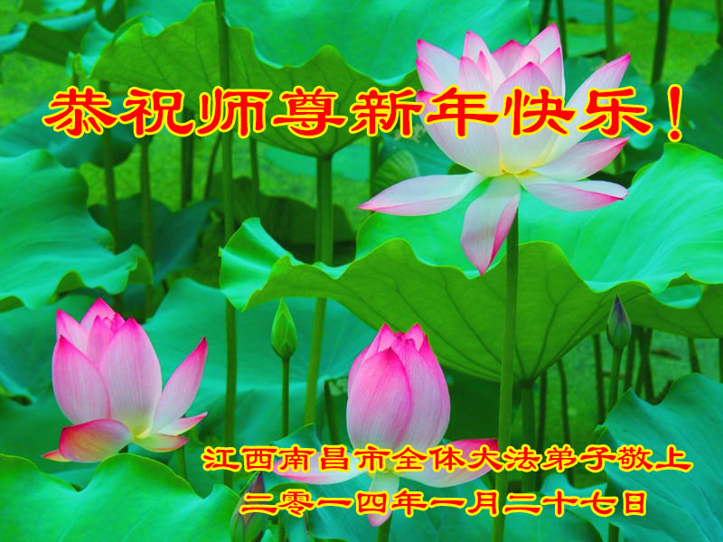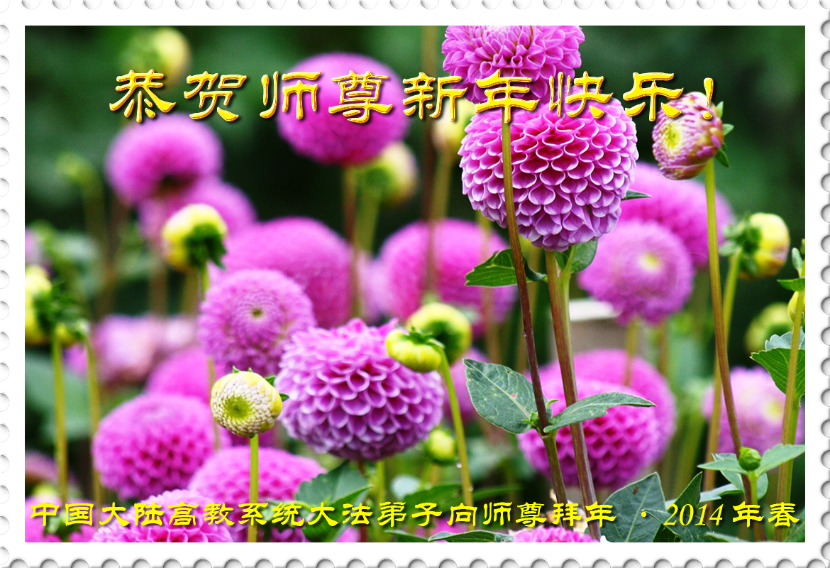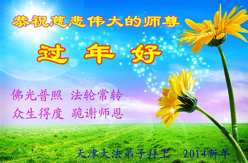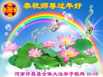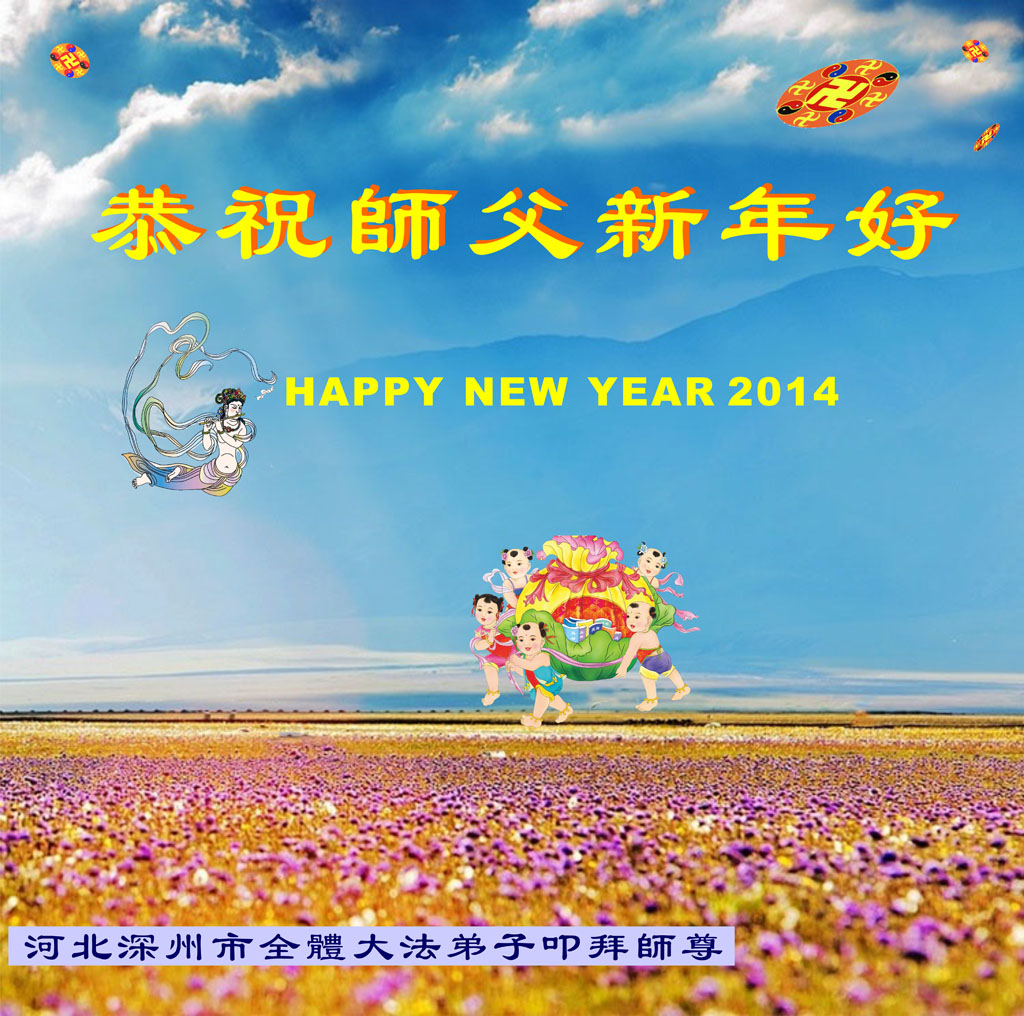 在辞旧迎新甲午年到来之际,黑龙江省建设系统全体大法弟子给慈悲伟大的师父拜年道一声師父辛苦了!并祝伟大的师父二零一四年过年好!