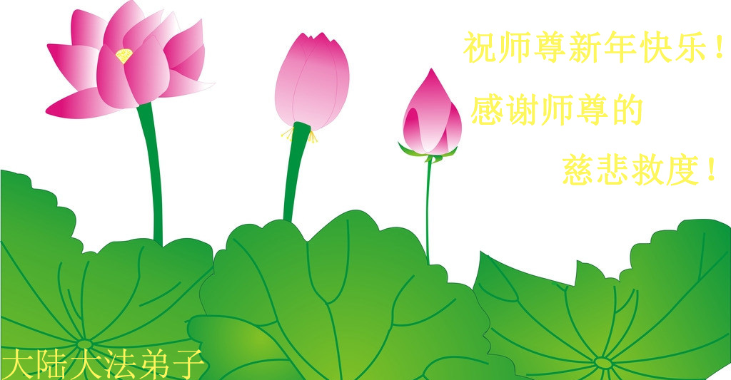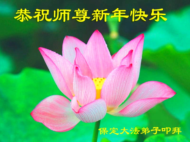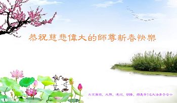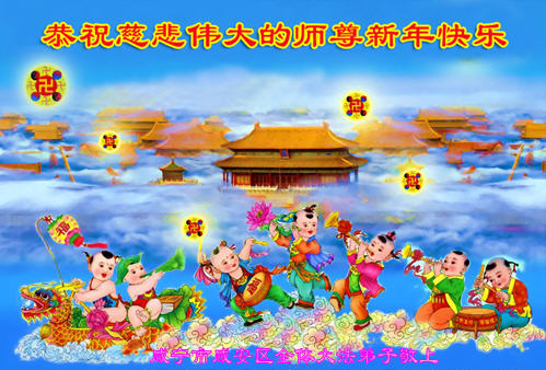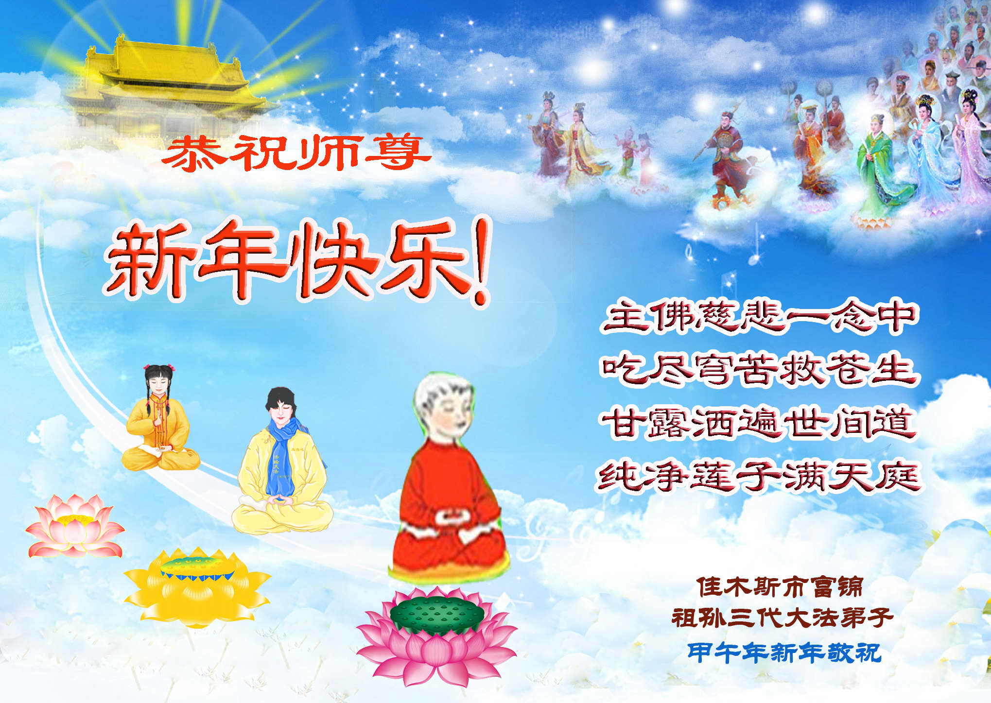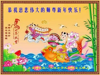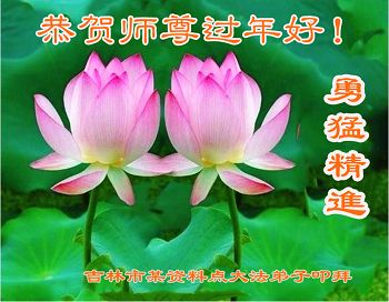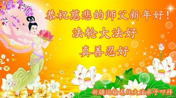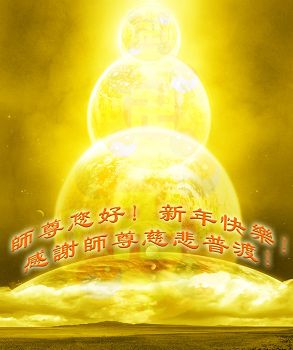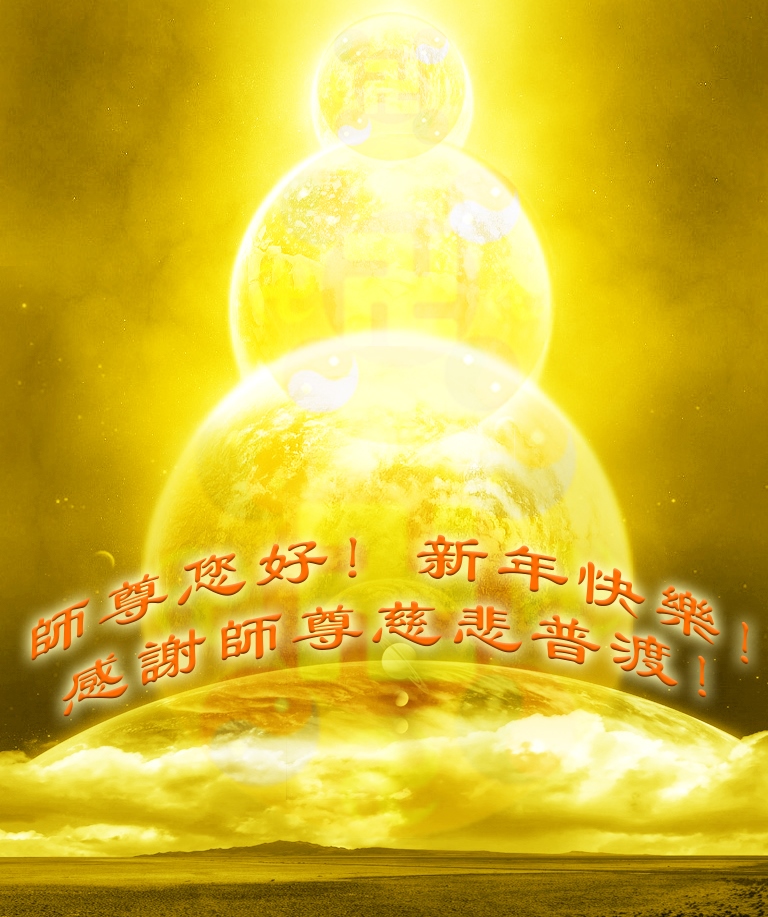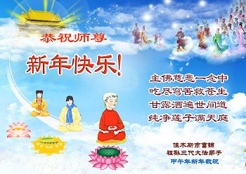 向慈悲伟大的师父拜年。用语言无法表达内心对师父的感恩,只有精進实修,做好助师正法,救度众生的三件事,抓紧时间救人,请师父放心。