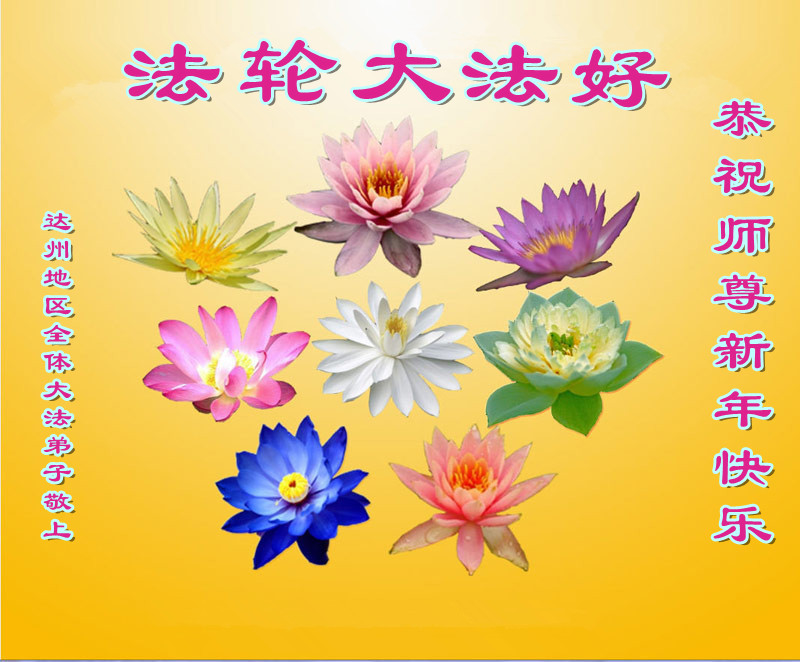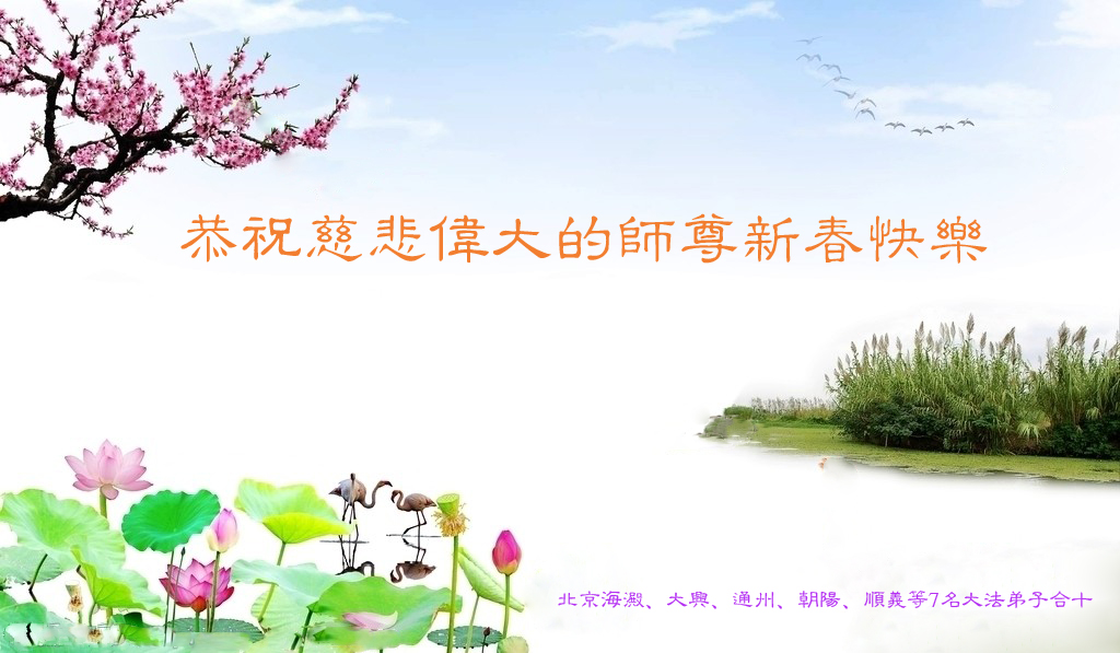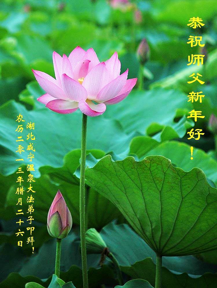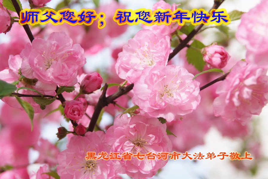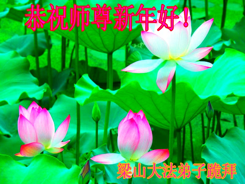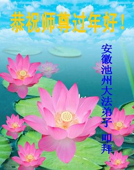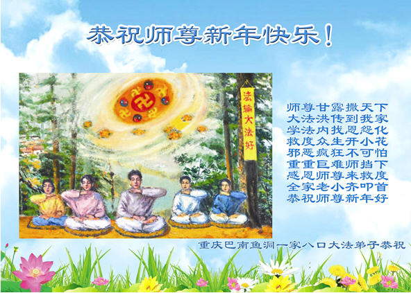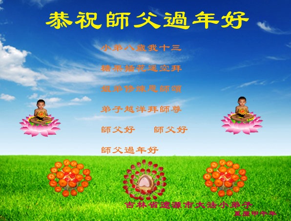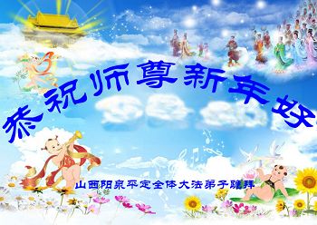 向慈悲伟大的师父拜年。用语言无法表达内心对师父的感恩,只有精進实修,做好助师正法,救度众生的三件事,抓紧时间救人,请师父放心。