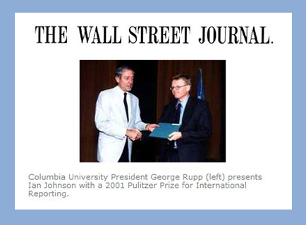 ![]() 《华尔街日报》记者Ian Johnson荣获2001年普利策奖。 (网页截图) |