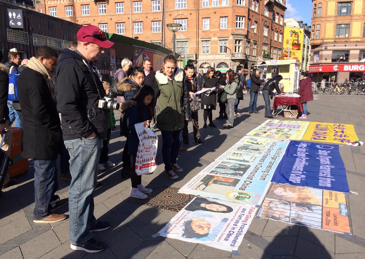 ![]() 丹麦的法轮功学员在哥本哈根市政厅广场设立真相点,揭露中共活摘器官的罪恶。 |