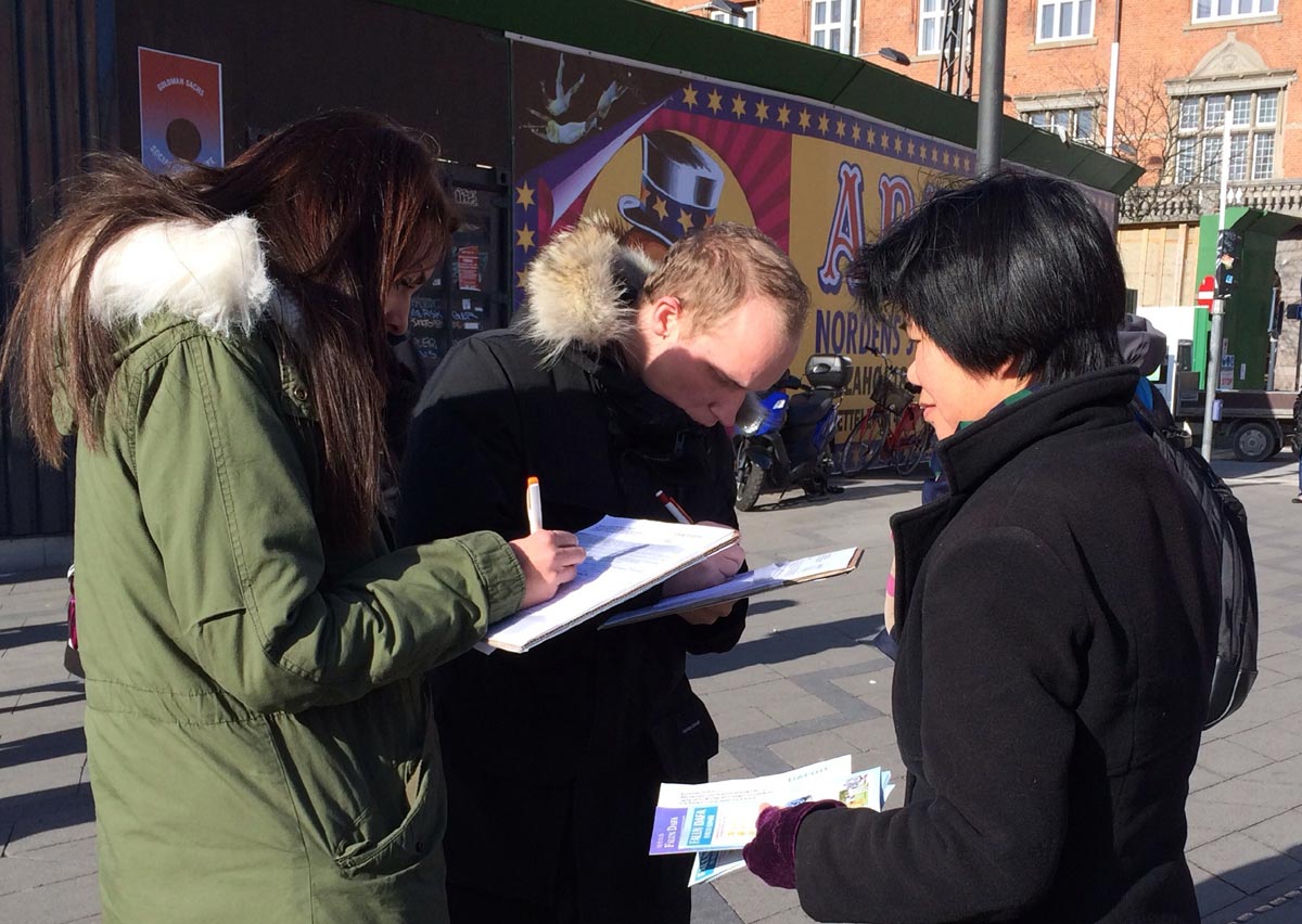 一名旅英中国留学生,是一个二十出头的小伙子,来丹麦旅游,在广场上退!党!义工给他看《真相特刊》上登载的贵州藏字石“中国共产党亡”照片,他问道:“这是真的吗?”退!党!义工给他详细解释后,他明白了,他用手机把照片拍下来,并进一步了解有关中共活摘法轮功学员器官的罪恶行径。