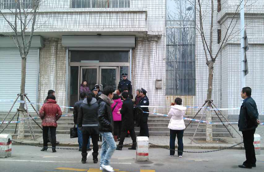 周围的群众同情地走到跟前问:“这么冷的天,躺在地上该多冷呀,这到底是怎么回事?”女儿伤心地哭喊着说:“我爸爸以前身体不好,修炼法轮功,按真善忍做好人,一家人非常幸福。可是却莫名其妙地被非法关押起来,我姥姥90多岁听说后腿摔坏了,好好的家庭被弄得支离破碎,这完全就是一场迫害。今天开庭,竟然还是刑事庭,太可笑了,杀人了,还是放火了,还是对别人造成伤害了。没有原告这个庭就这么荒唐的开了。我和我妈妈半年都没见着他了,本想今天进去旁听,却被拒之门外,哪条法律这么规定的,明明昨天还和法官通电话说可以旁听的,今天就出尔反尔,我妈被刺激得心脏病犯了,堂堂一个法院,却不按法律办事,不敢让我们娘俩进去,里面肯定有猫腻,哪还有天理,哪还有王法。”