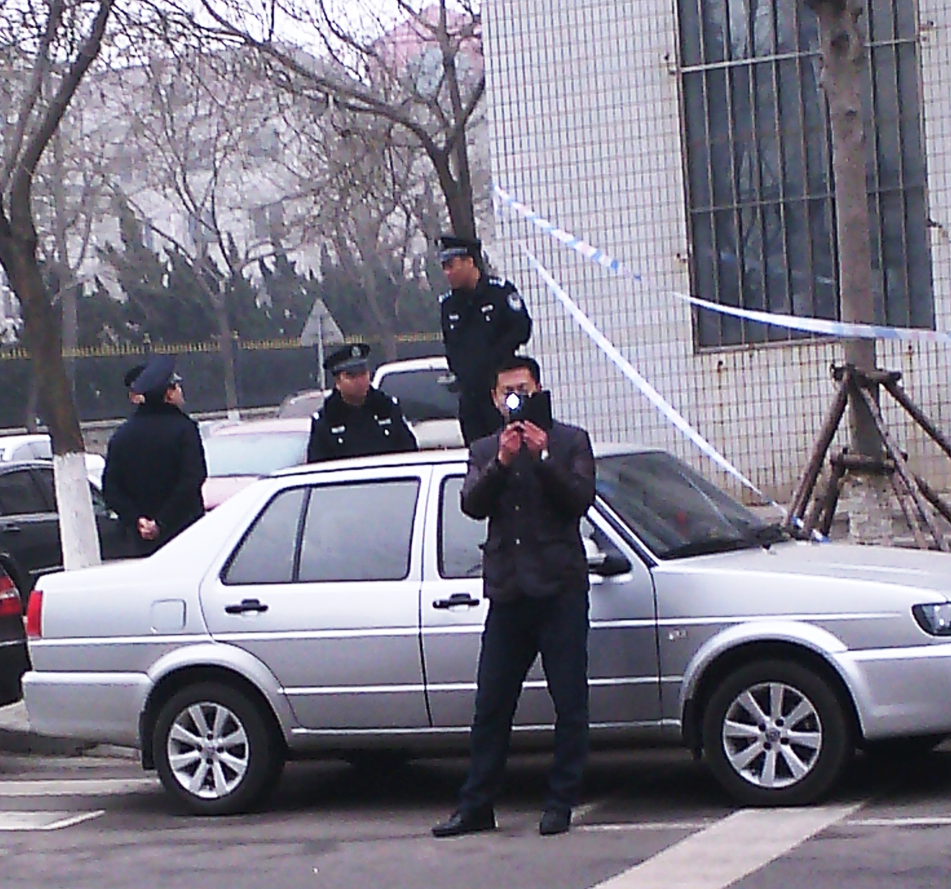 而金州公安局国保竟然公然非法进行拍摄。夏元新的女儿见状直奔过去,质问:“你是谁呀,拍什么拍,把证件拿出来,谁给你的权利!”另一位家属拽住这个人的胳膊要求其将录像删了,国保负责人郭林跑过来,拽住家属的衣服竟然威胁道:“把手松了,要不把你送到派出所!”