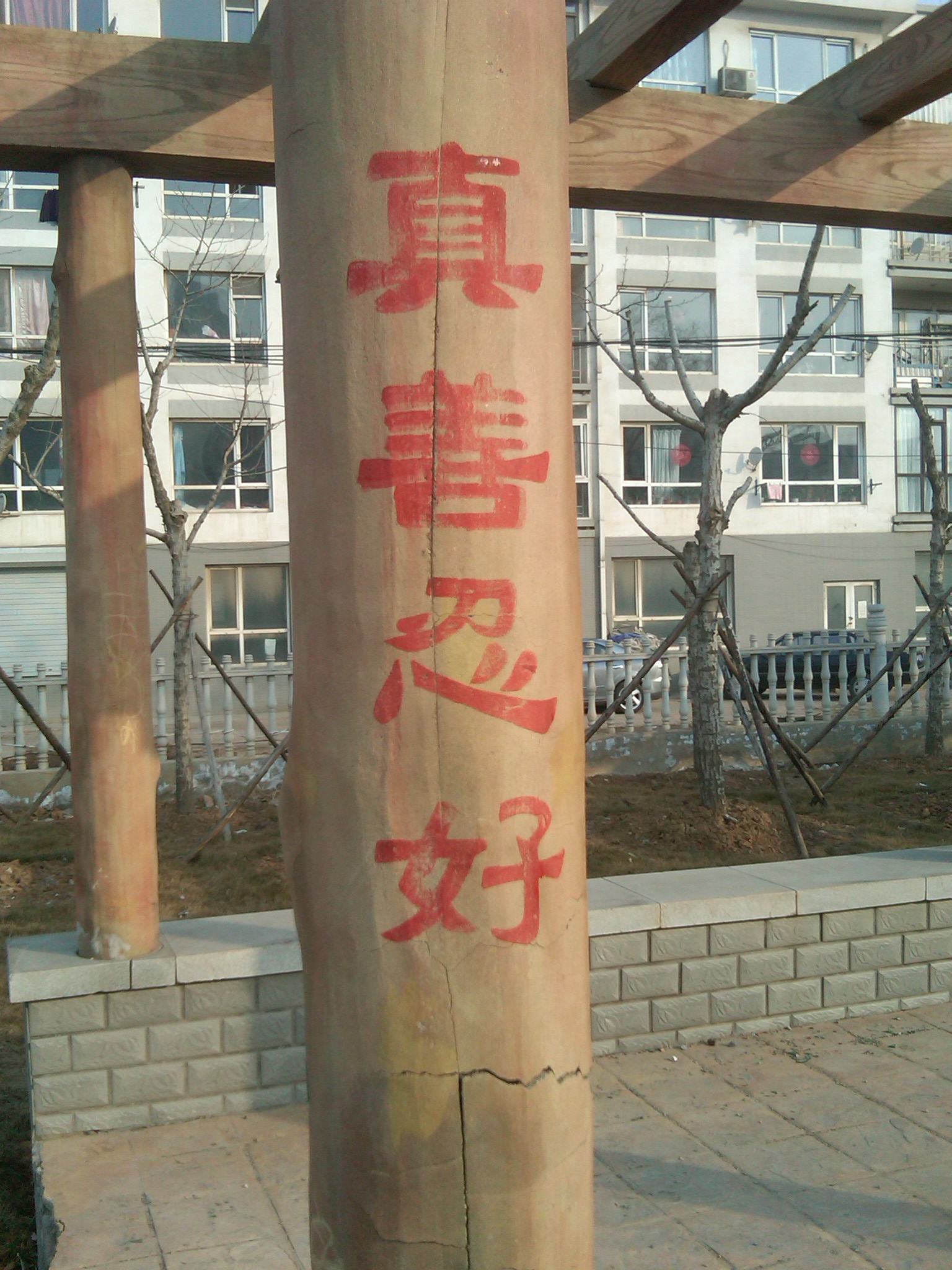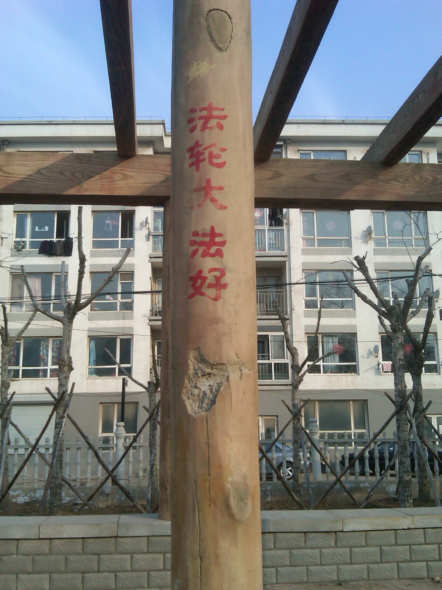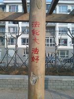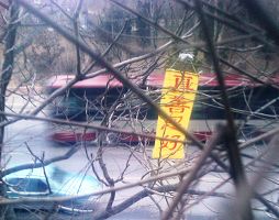 【明慧网二零一四年三月十九日】中共两会期间,辽宁省某城市市内的路街出现大量各种真相标语。