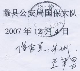 3、伪造搜查证:在非法抄家时,当时冯文珍的丈夫向公安要搜查证,他们没有,就在拿不出搜查证的情况下,强行、野蛮的搜查、抄家。然而在2007年12月24日开庭时,突然亮出“蠡县刑搜38号”搜查证。