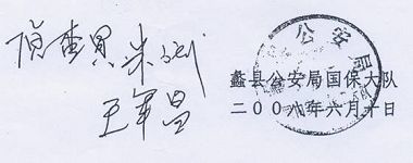 判决书第(9)项:“蠡县公安局国内安全保卫大队2008年8月24日证明”,蠡县法院最后一次开庭日期是2008年6月17日,以后未再开庭。此证明又从何而来?