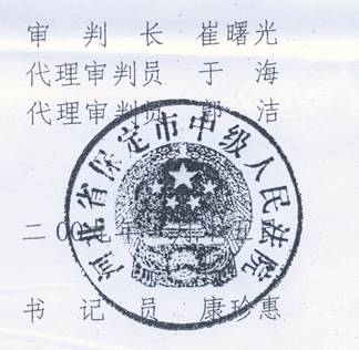 保定市中级法院:崔曙光、于海、郭洁、康珍惠