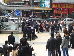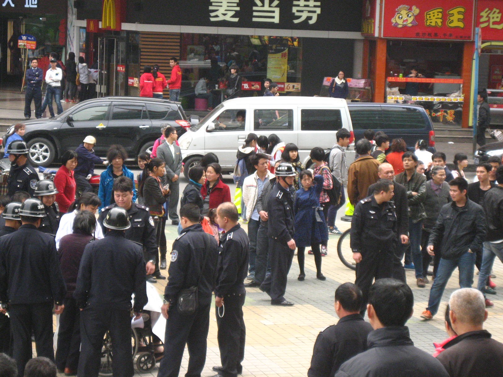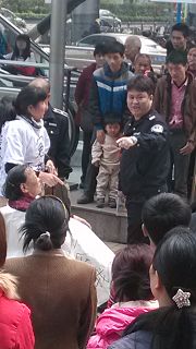 警察们绑架的同时,粗暴的驱赶越来越多的围观民众,威胁不准拍照,一警察恶狠狠地逼着一位男青年把手机里的照片删除,但是依然有民众没有被吓倒,把整个过程拍录下来了。